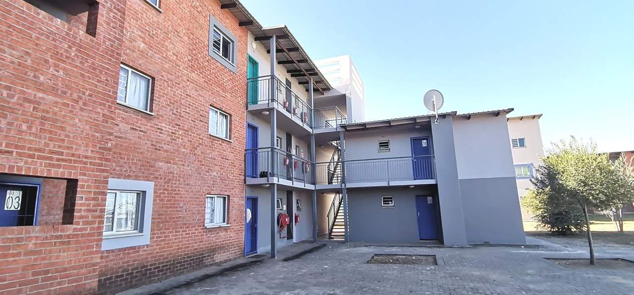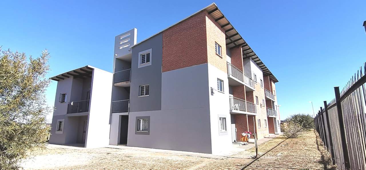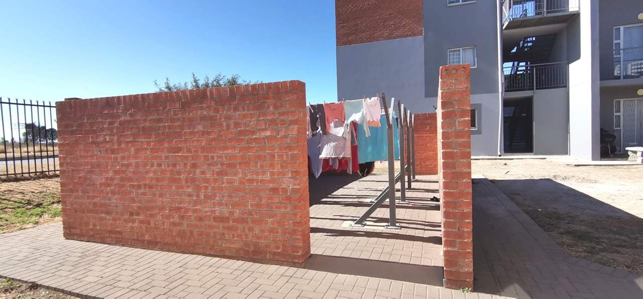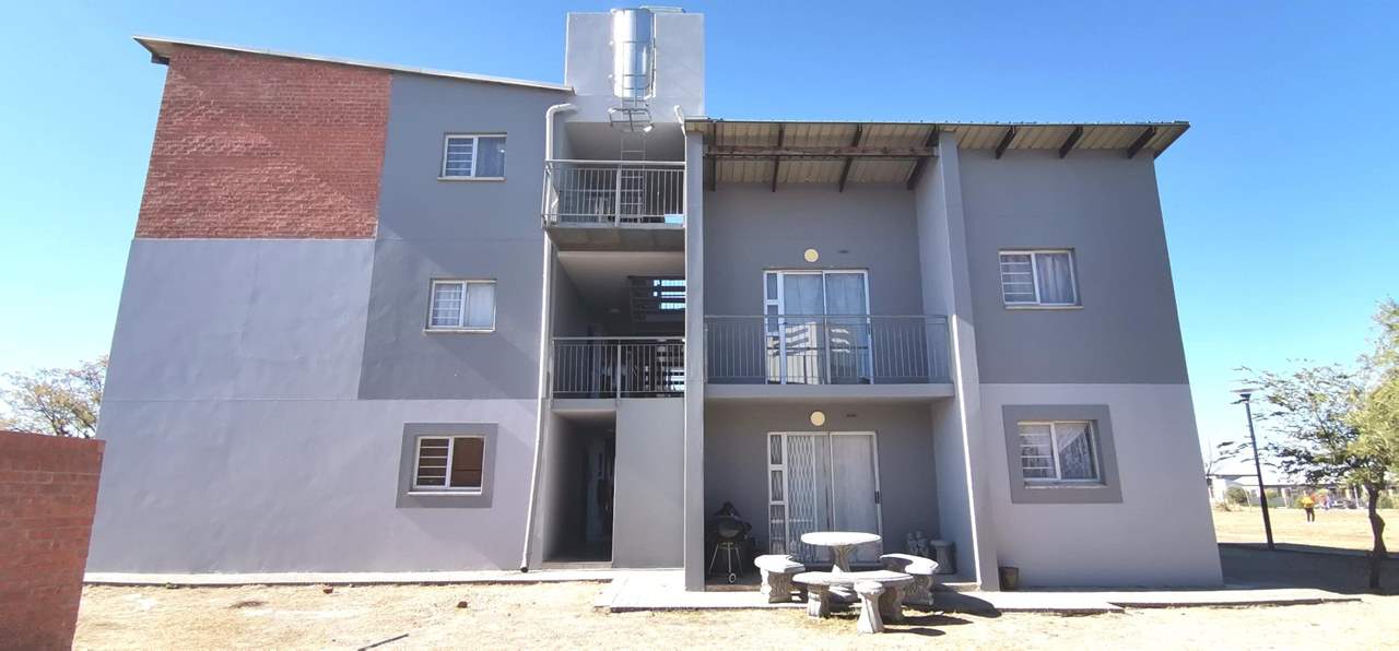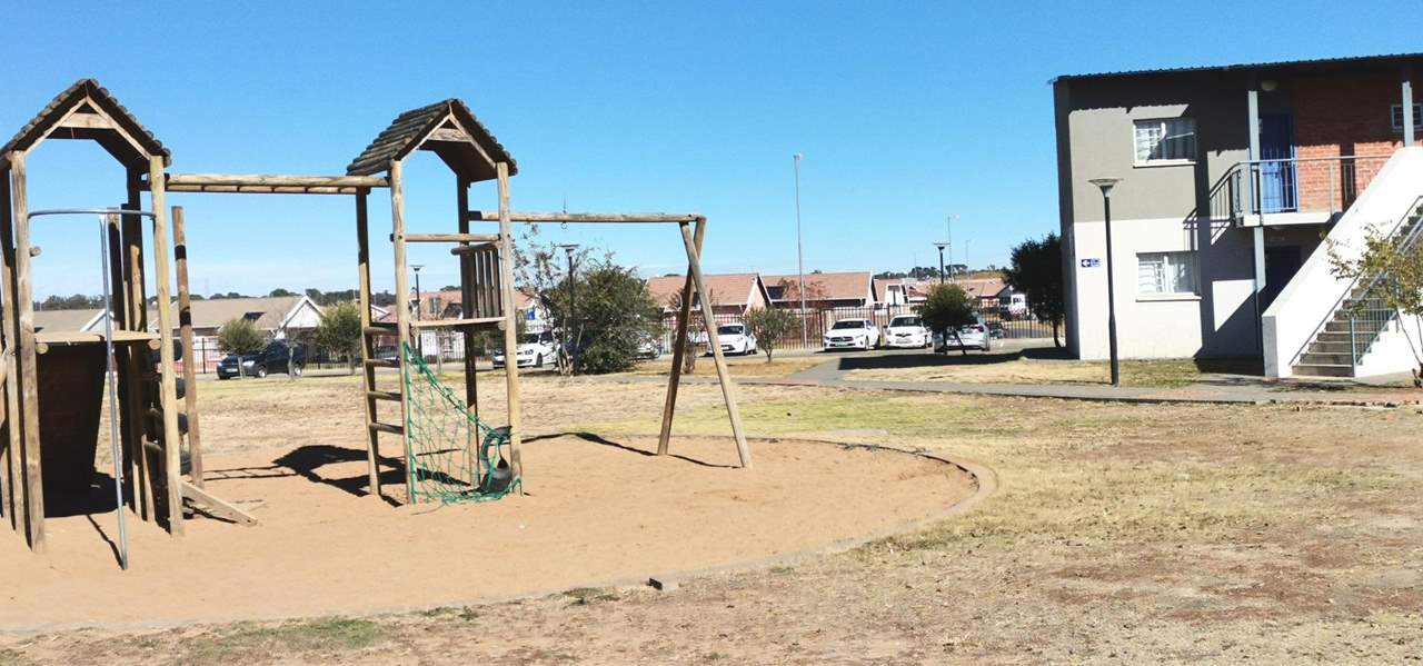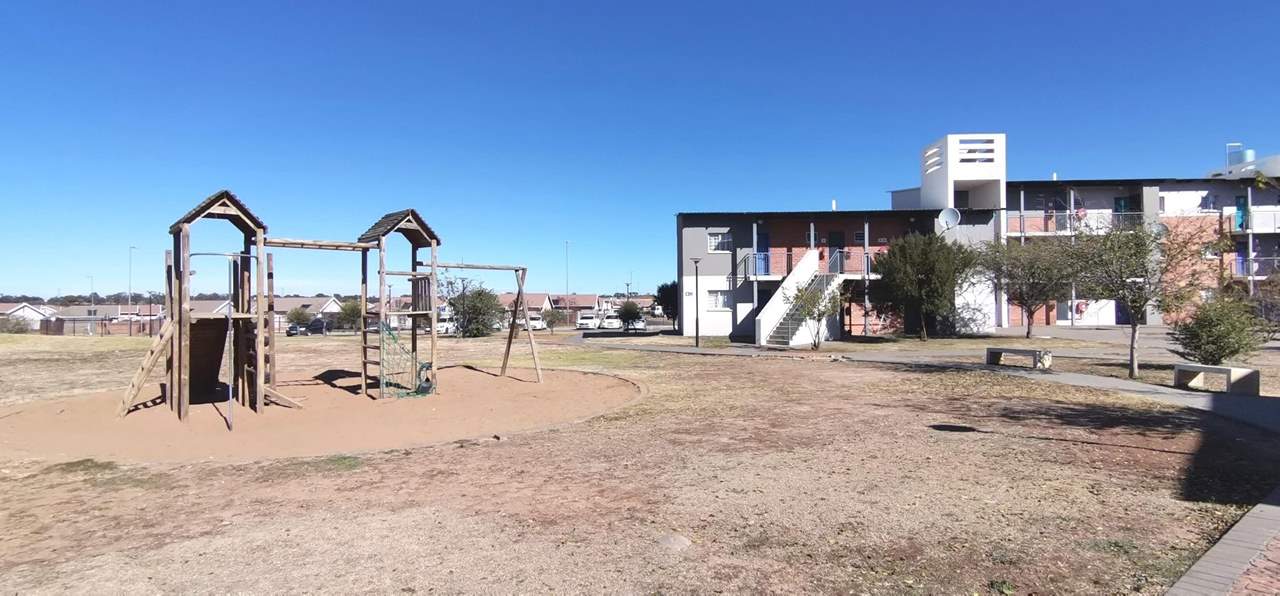Ground Floor flat consists of 2 Bedrooms, 1 bathroom (with bath shower), open plan living room and kitchen with built-in cupboards and stove. Sliding door open to the garden where you can have a nice braai or relax. The unit is completely tiled and both bedrooms are fitted with built-in cupboards. Prepaid electricity, solar, cell to gate and very good security. Shade net carport for each unit and more than enough guest parking. Communal garden, playground and washing lines. Opposite RWP Day Care and close to The Academy Private Primary and Secondary School. Plus, minus 7 km from town on the way to The Bram Fischer International Airport and Busamed Private Hospital. Raceway Park is situated opposite Aljo's Shopping Center with Spar, a bottle store, takeaways and Engen Filling Station. We can assist you with free pre-qualification and professional advice.