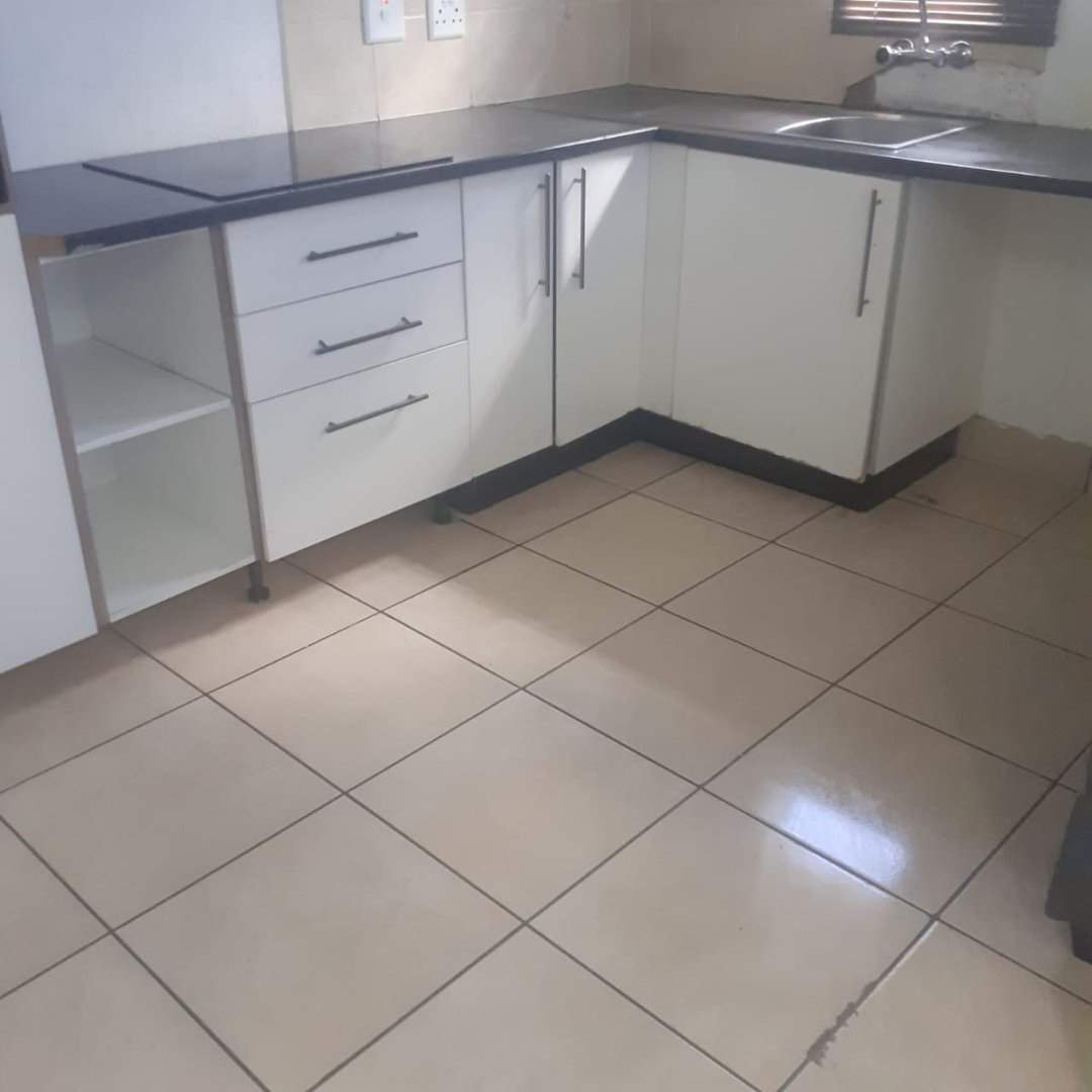 Tiled floors kitchen bathroom lounge and one bedroom other bedrooms with laminated.