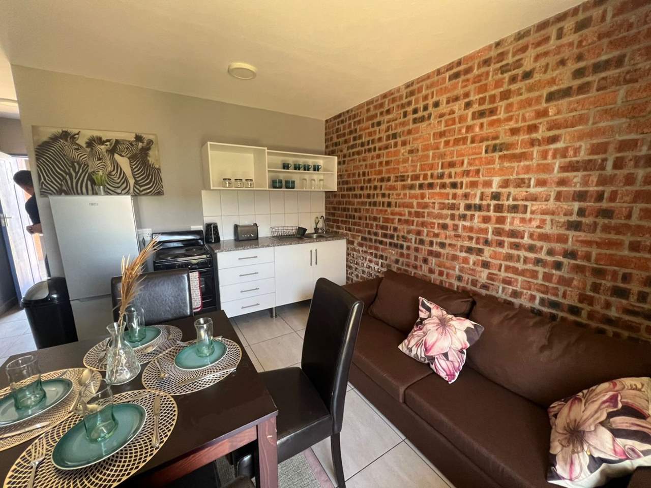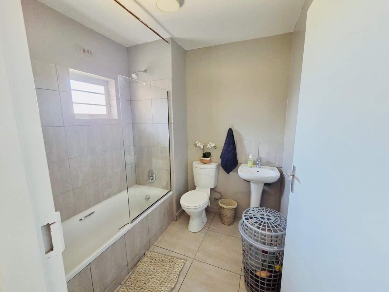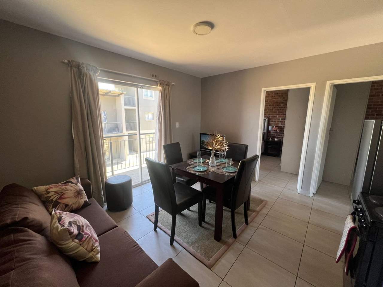 This well-maintained two-bedroom flat offers built-in cupboards in both bedrooms. The open-plan kitchen features built-in cupboards and flows seamlessly into the lounge area, creating a comfortable living space.