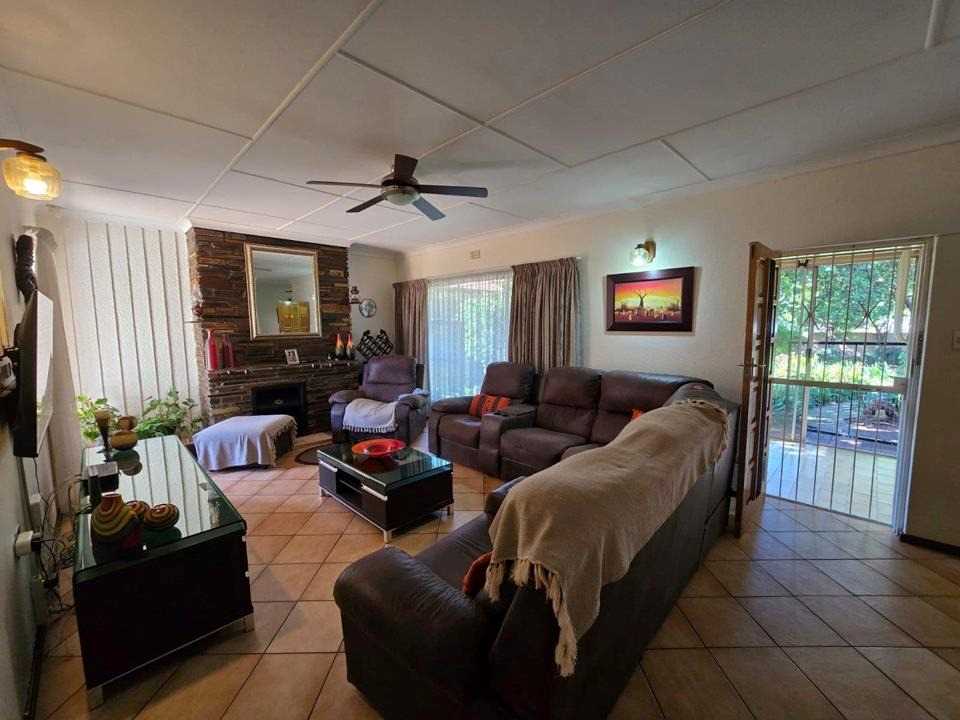 Outdoor living is a pleasure with the home's entertainment area, featuring a built-in braai perfect for weekend barbecues. Additional amenities include a spacious storeroom for all your storage needs and carports that can accommodate up to four vehicles. The beautifully manicured garden, sustained by a borehole, offers a tranquil escape from city life.