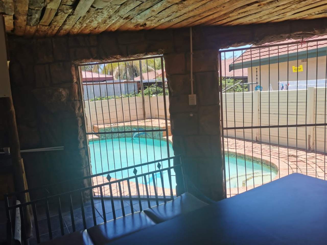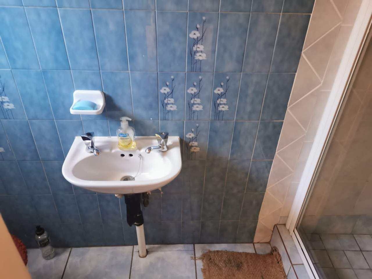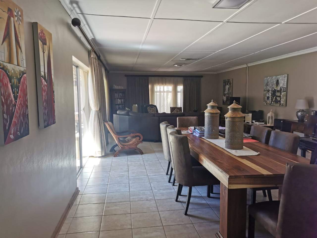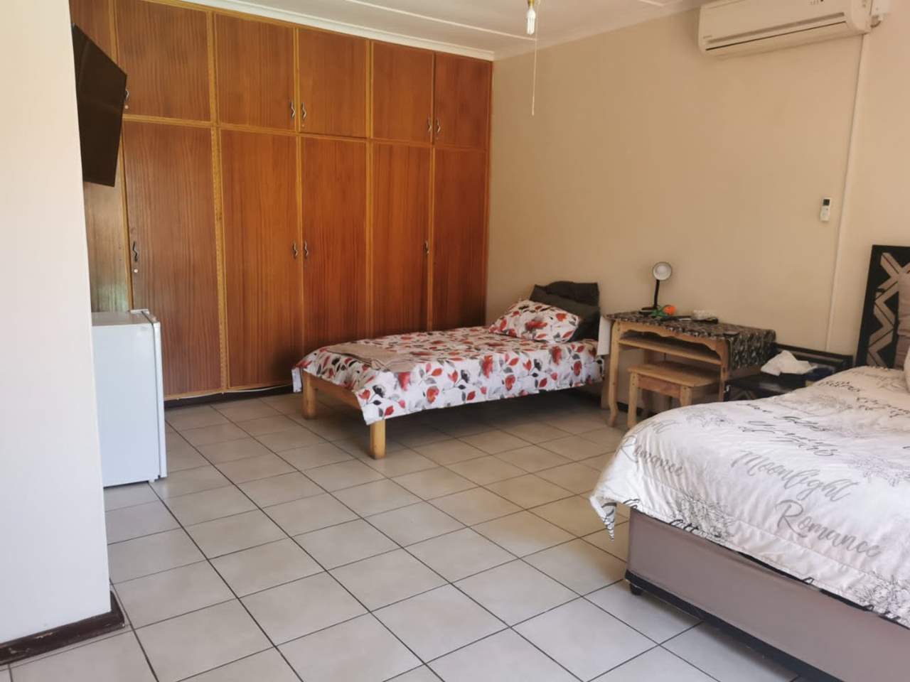 It offers four bachelors flats, with the income of R 18 000. The main house offers five bedrooms, three bathroom, Kitchen with tiled floor, build in cupboards and eye level oven. This is indeed a beautiful place in a beautiful area. A great investment for the future and a peace of mind.