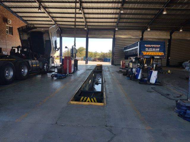 Double story workshop with 7 drive through bays 6 include service pits. Entrances are secured with industrial roller shutter doors with wash bay, offices, ablution and Concrete Chassy Bending points. Original workshop fully equipped for trailer manufacturing includes shade parking ports.