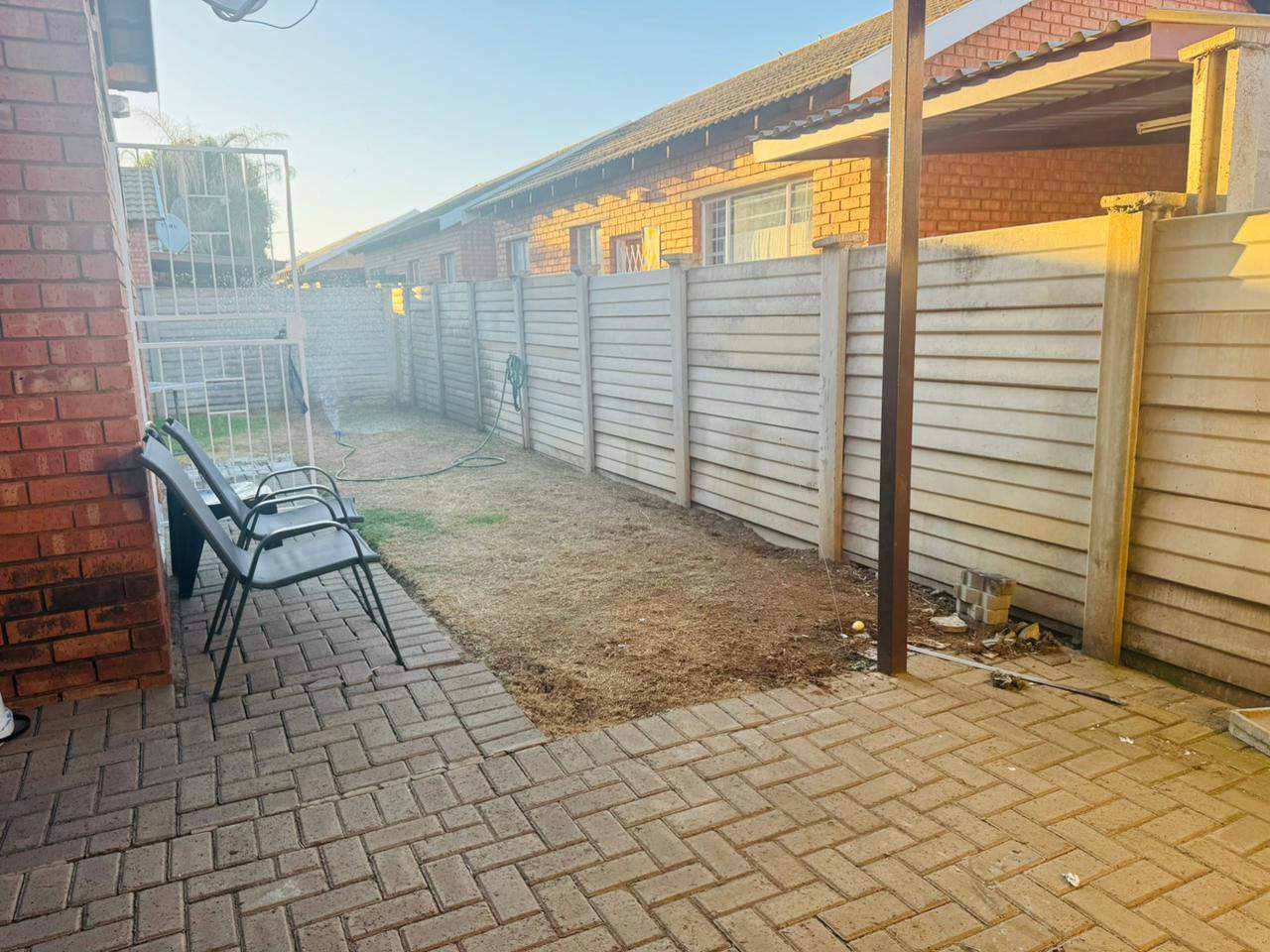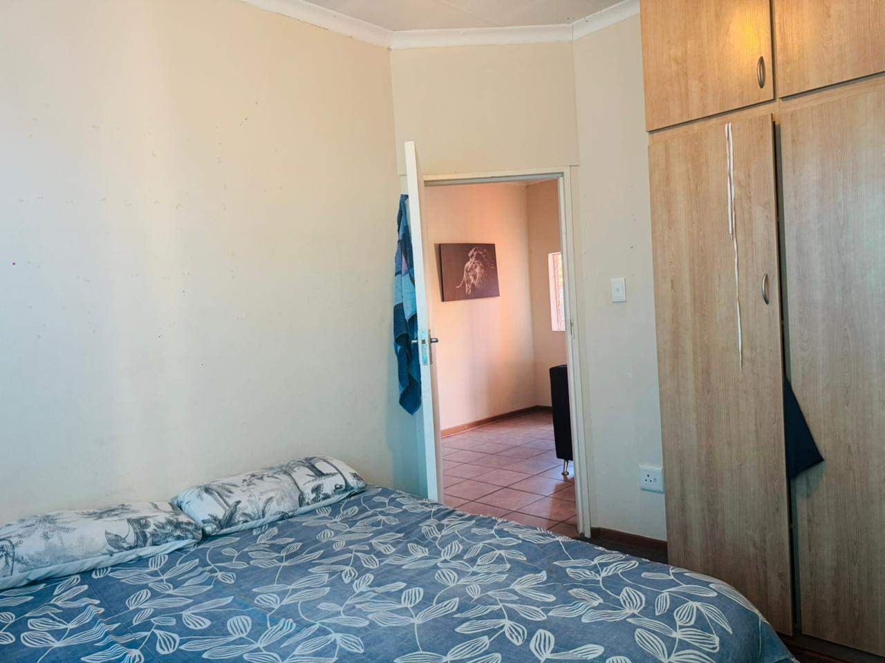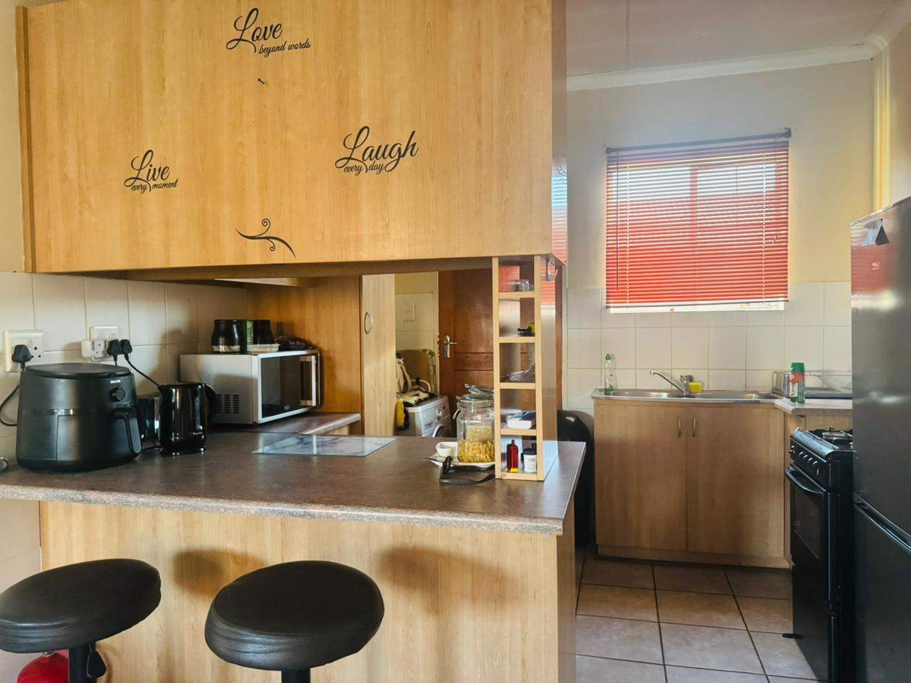 The unit consists of two bedrooms with built-in cupboards, a full bathroom and an open-plan lounge and kitchen with ample cupboard space. As you go out through the sliding door, there is an immaculate private garden area for your use. A lovely space to host family and friends over a braai in the summer days.