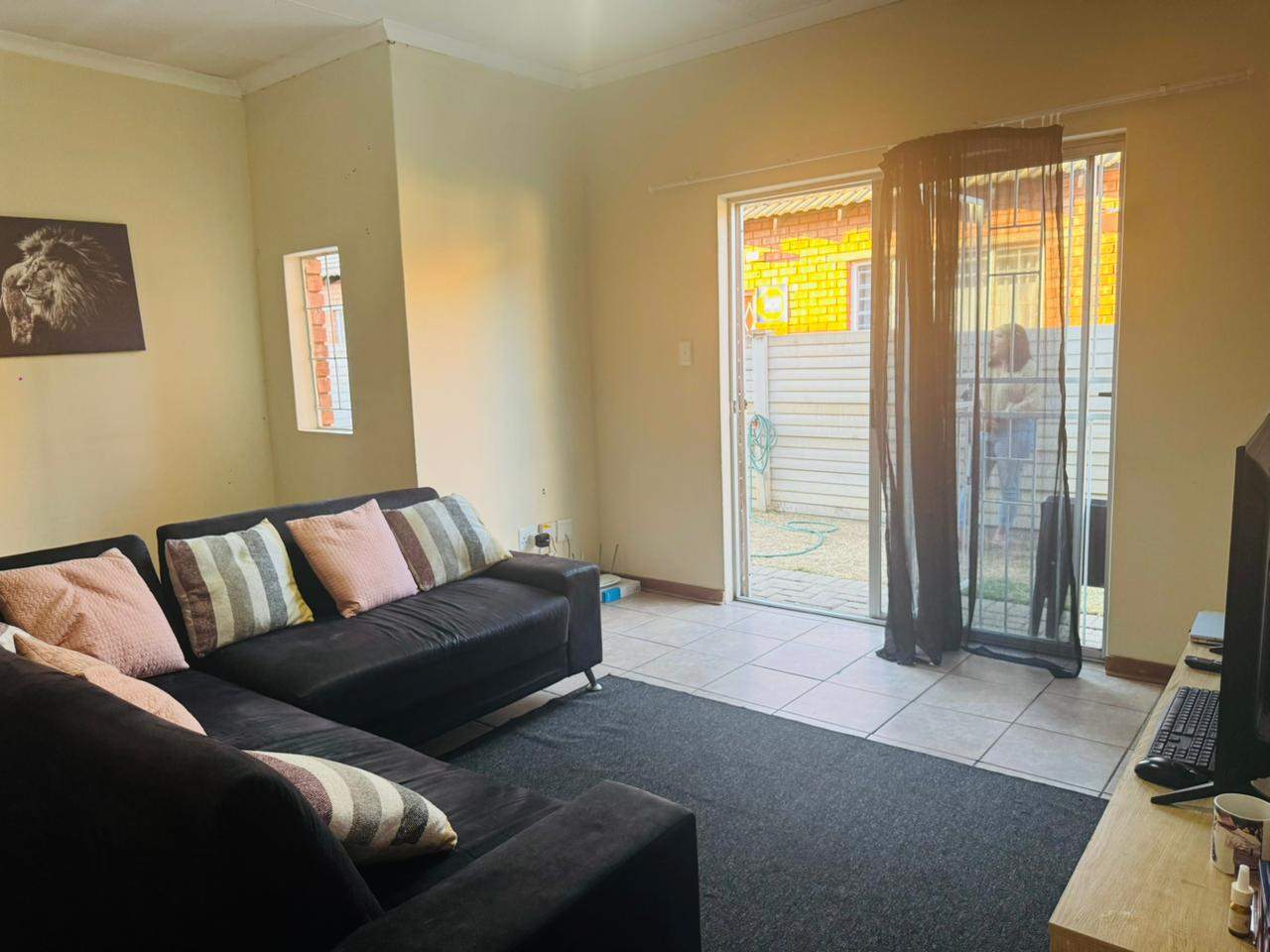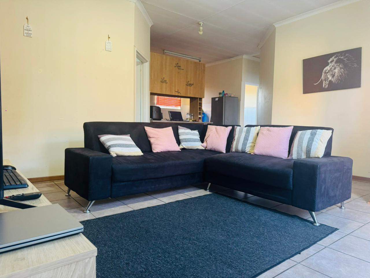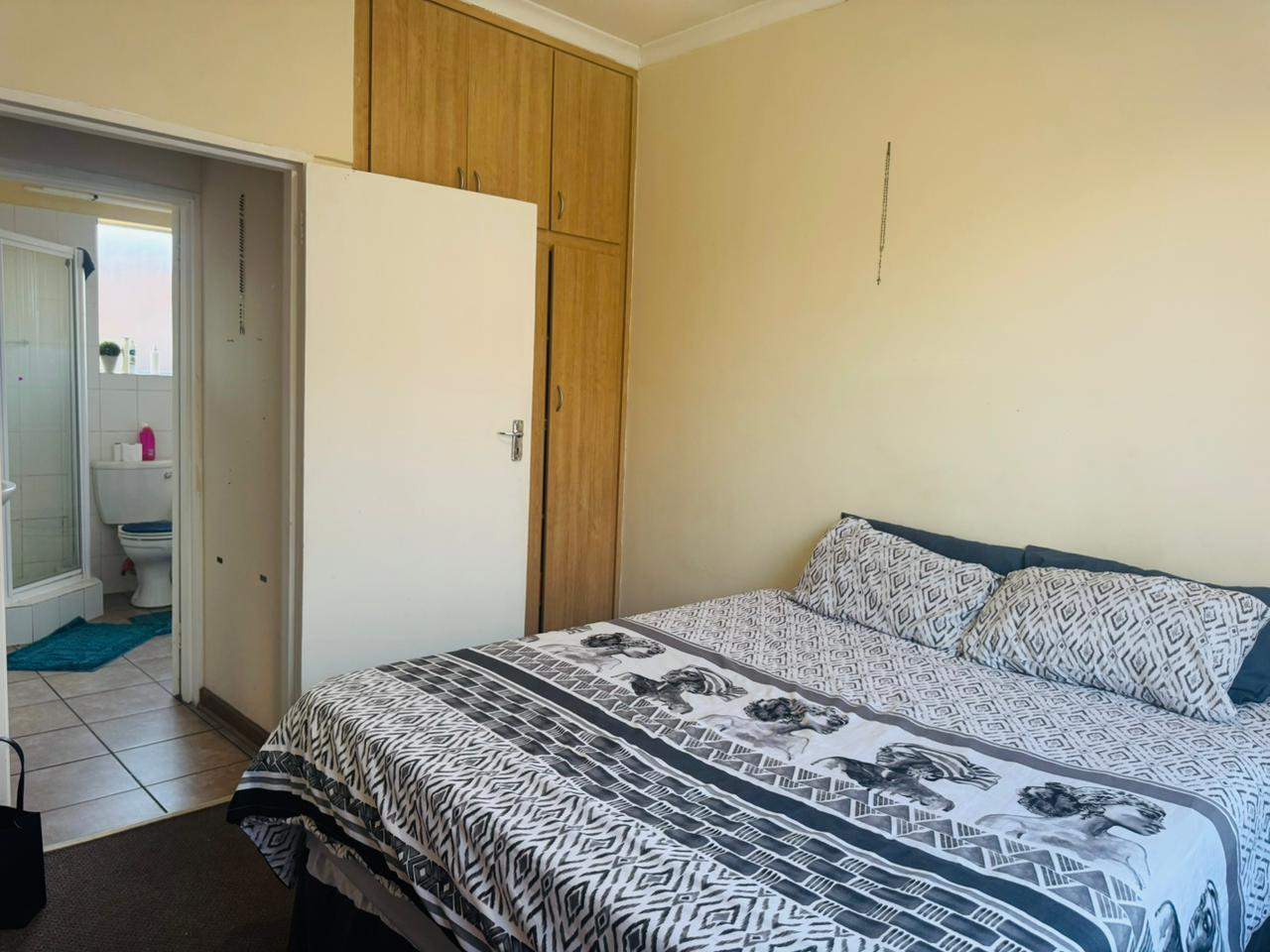 The unit consists of two bedrooms with built-in cupboards, a full bathroom and an open-plan lounge and kitchen with ample cupboard space. As you go out through the sliding door, there is an immaculate private garden area for your use. A lovely space to host family and friends over a braai in the summer days.