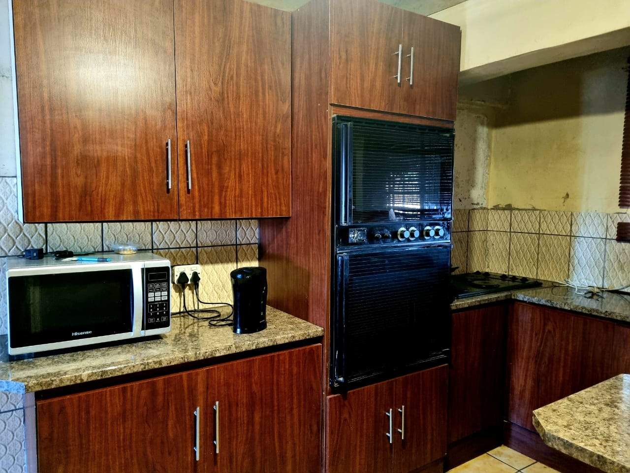Four Bedrooms, one Bathroom, a Kitchen (with built-in cupboards, a stove, and eye level oven), a Lounge, a Dining room, and a carport for four vehicles.