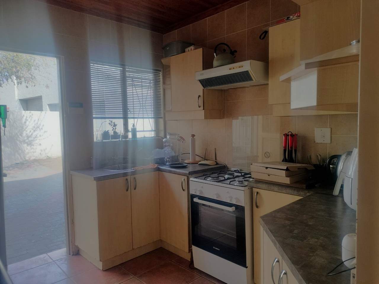 Main house consists of 3 spacious bedrooms with built in cupboards, 2 bathrooms, big kitchen with built-in cupboards, gas stove, double oven, scalarly, dining room, lounge, living room, office/study upstairs, large pool, braai area