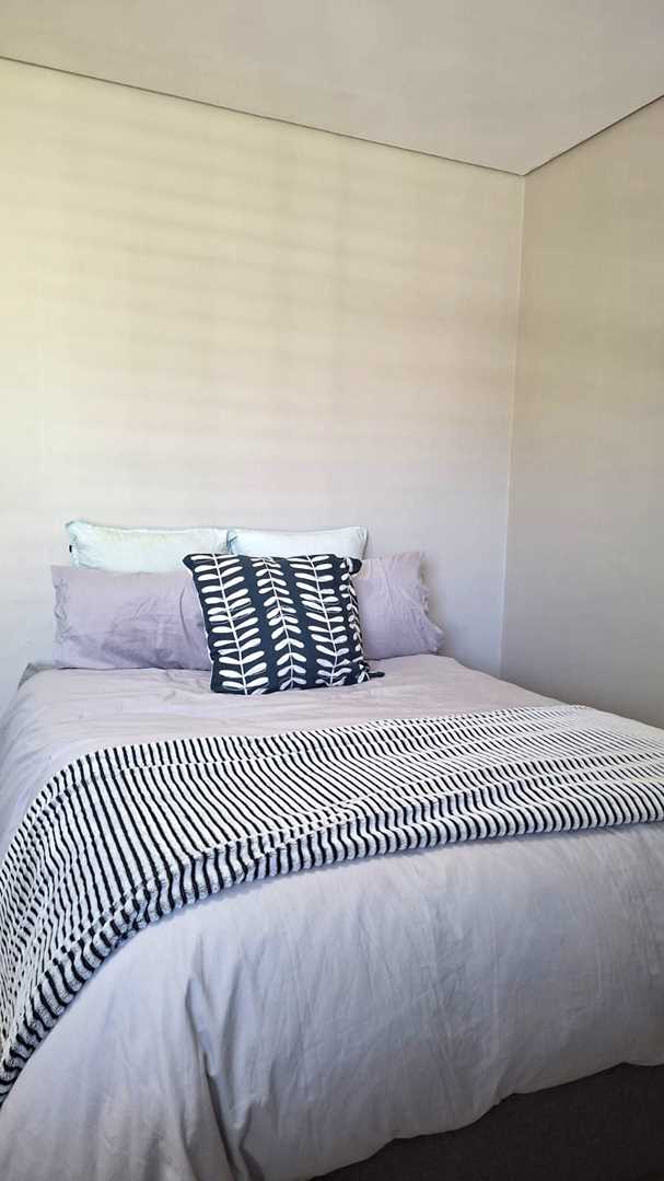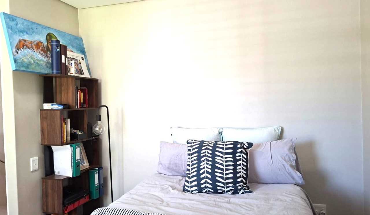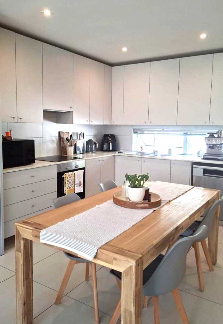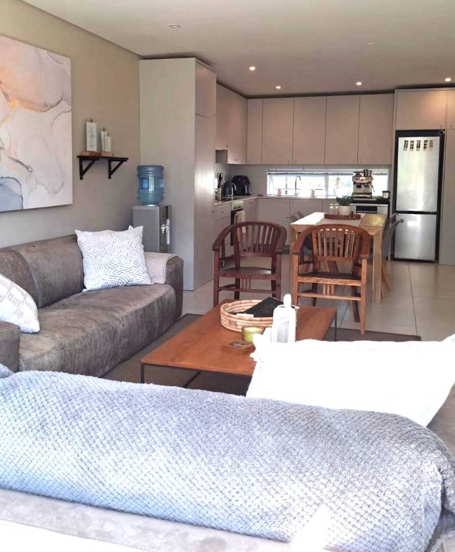 As you step into the house, you will find a large open plan kitchen and lounge/dining room, opening up to a covered patio with build-in braai, and a beautiful enclosed garden, bordering a green zone.