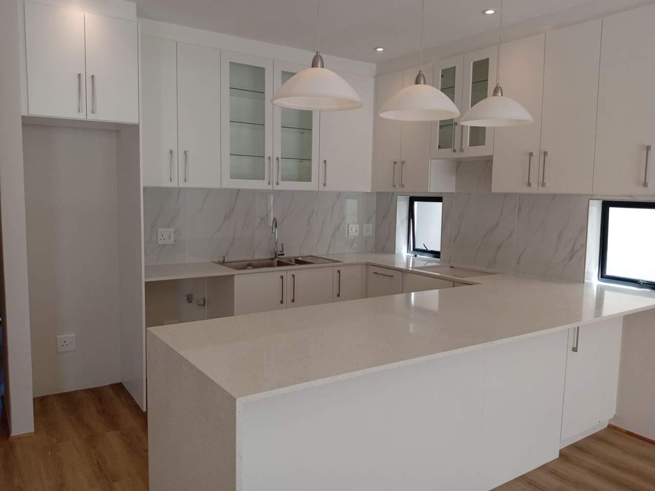 3 bedrooms, 2 bathrooms, open-plan kitchen with scullery