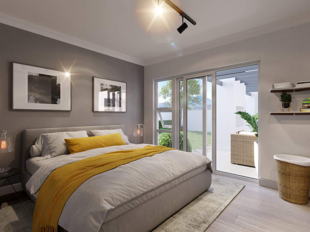 The living area opens via sliding doors to a covered patio with a built-in braai, where you can relax and enjoy uninterrupted mountain views and effortless indoor-outdoor living.