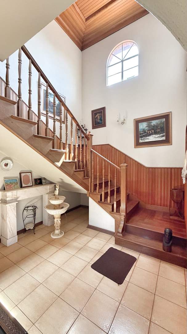 Upstairs, you’ll find ample linen storage, three well-sized bedrooms, and two full bathrooms, including a main en-suite. The main bedroom boasts a large private balcony overlooking the beautifully maintained garden.