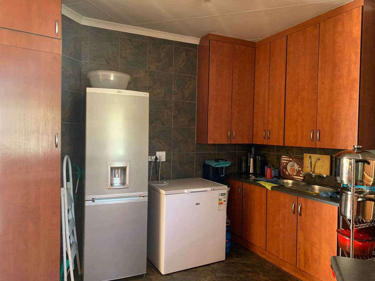 The kitchen is fitted with built-in cupboards, an extractor fan, an under-counter oven, and a hob.