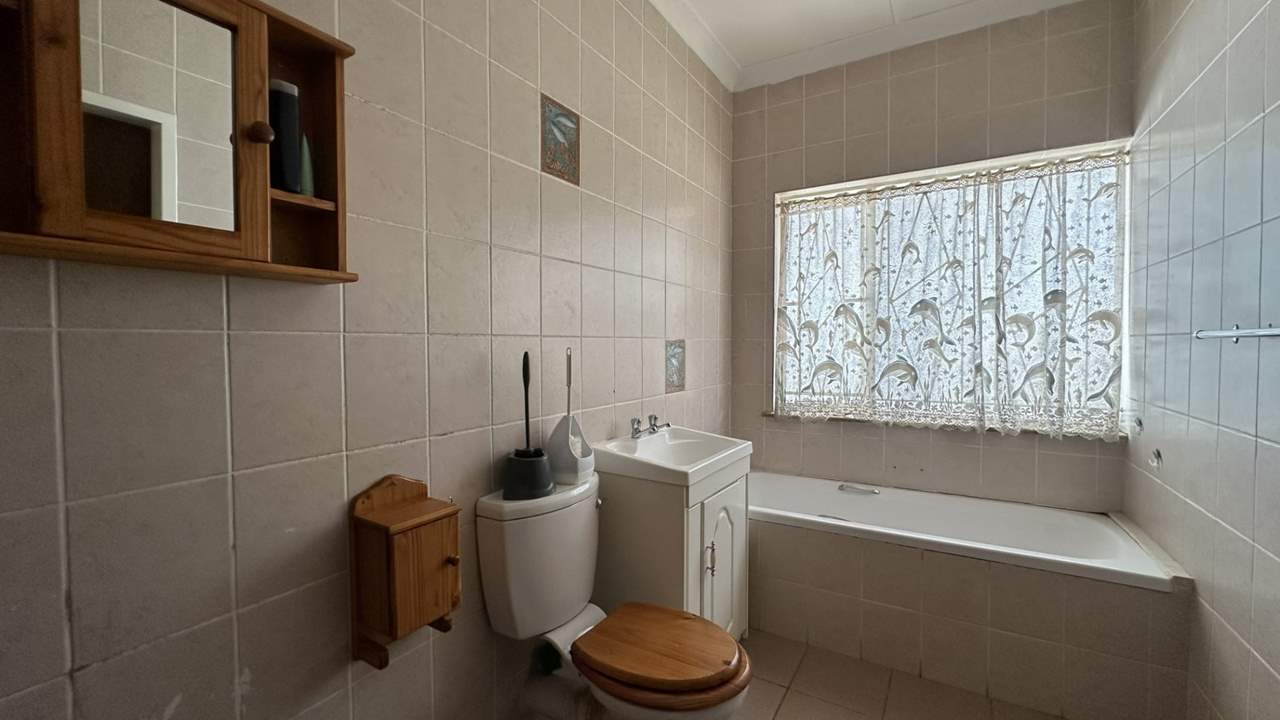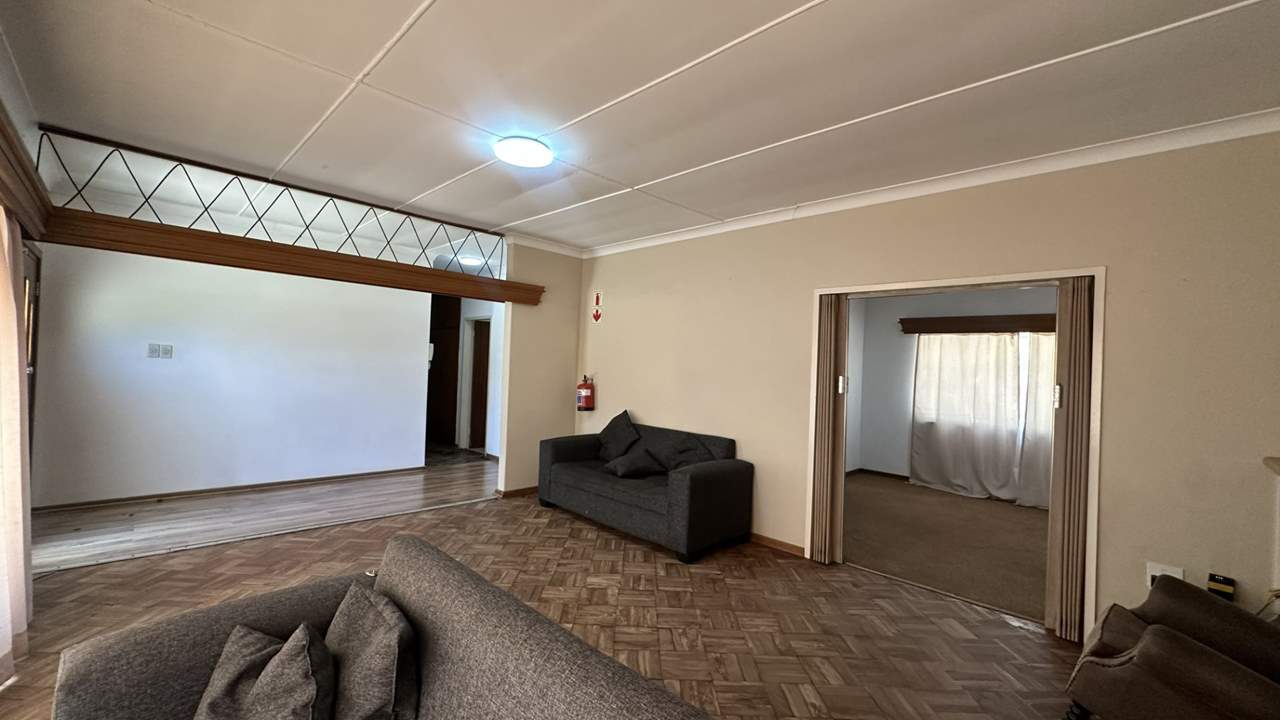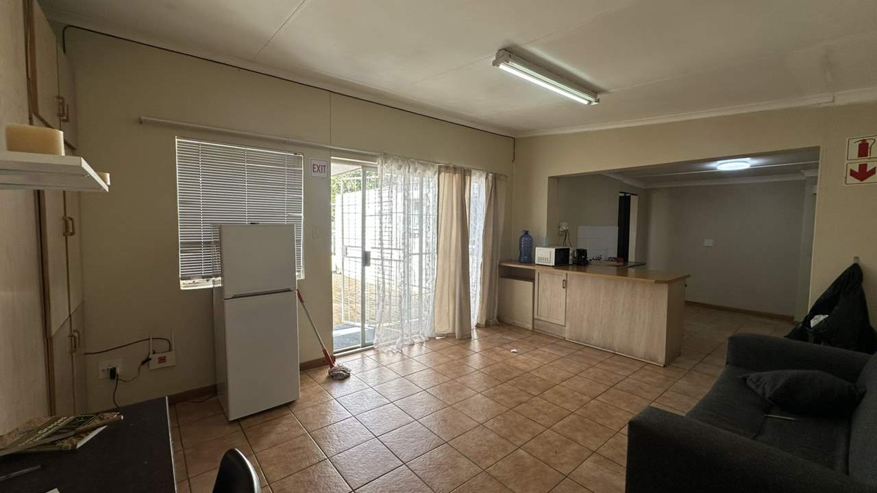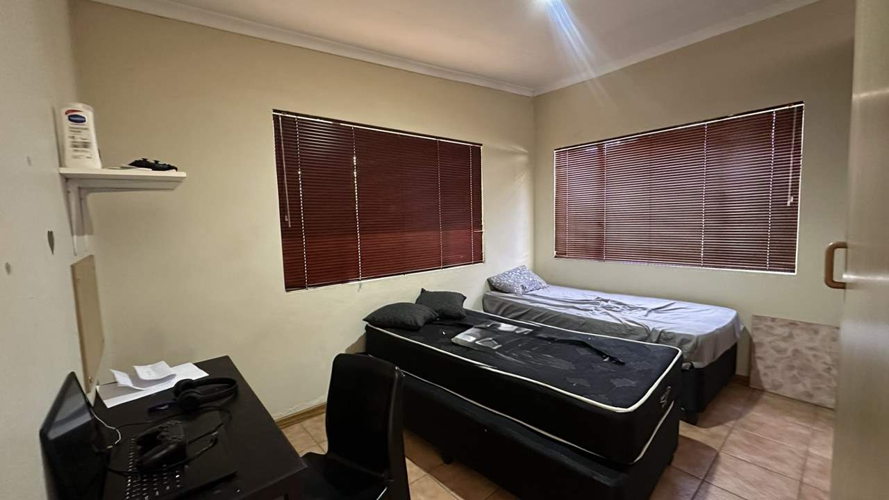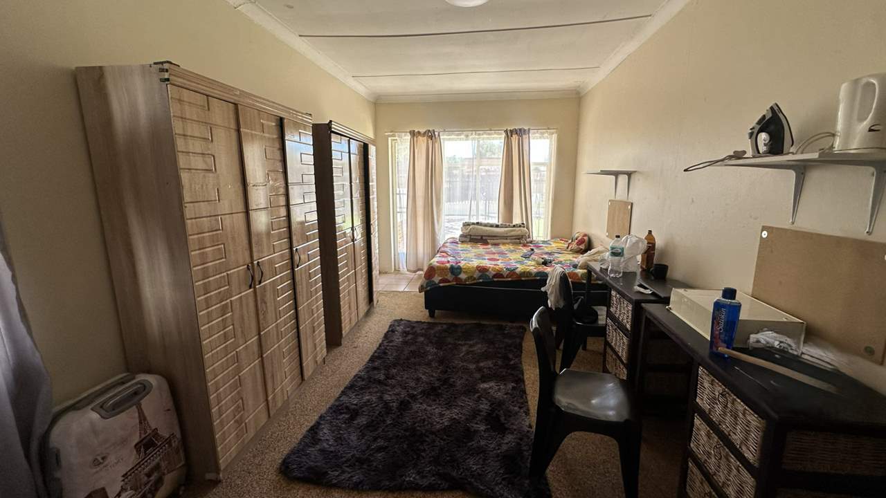 The main house currently offers four bedrooms, a kitchen, lounge, dining area, and bathrooms. Some of the rooms include built-in cupboards, and the home features a mix of tiled and wooden flooring. The living area could potentially be converted into two additional bedrooms to increase rental capacity.