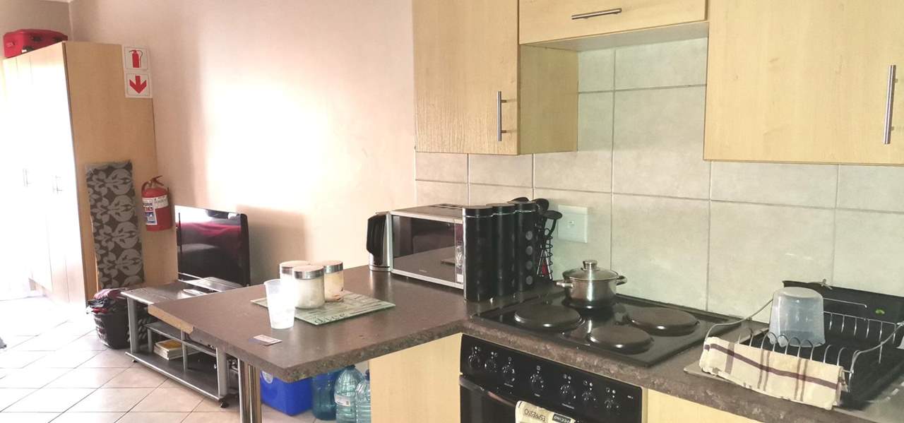 This is your chance to buy this affordable bachelor flat. Open plan bedroom with built-in cupboards, open plan living area with built-in desk, bathroom with shower, toilet and basin, kitchen with built-in cupboards, built-in stove and washing machine connection. Prepaid electricity, shade net carport and cell to gate. Surveillance cameras cover the whole area and a laundromat on the premises. Close to Langenhovenpark with a variety of shops, restaurants, nurseries, petrol stations and gym.