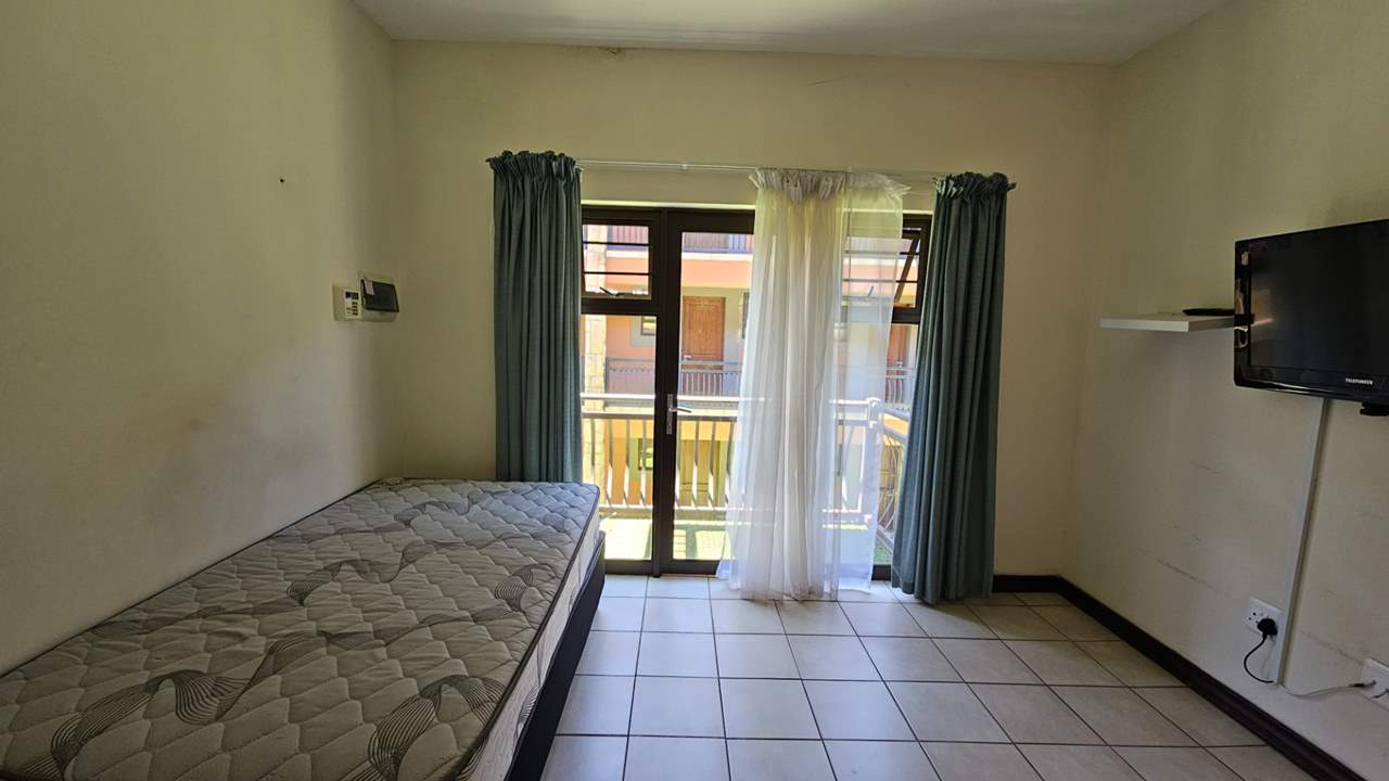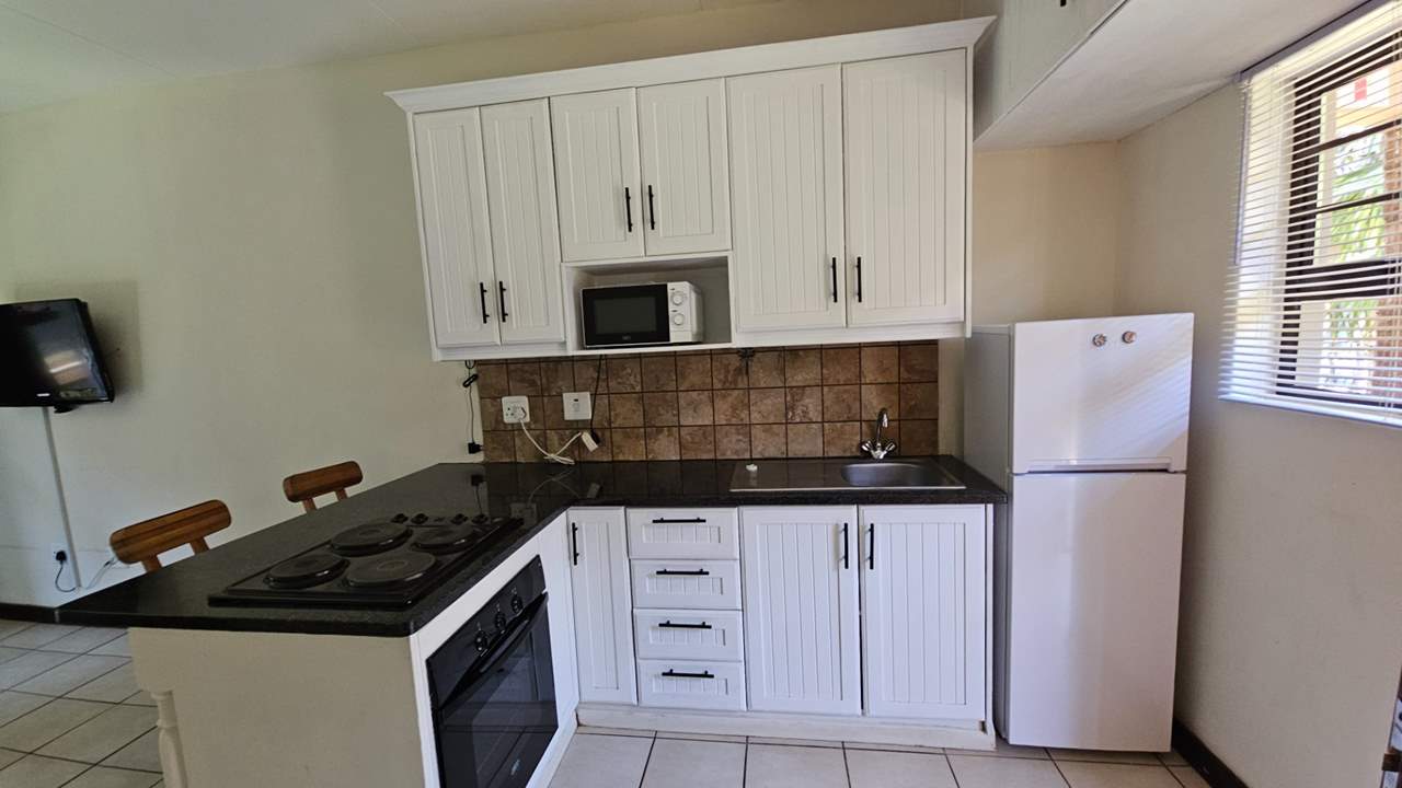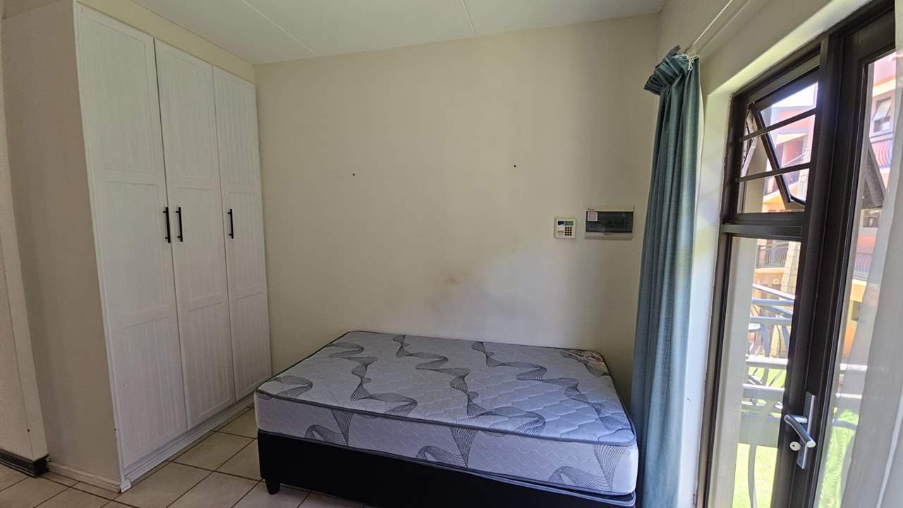 The unit offers an open-plan living and kitchen area fitted with built-in cupboards, granite countertops, a breakfast nook, and space for appliances. The bedroom is well-sized with built-in cupboards and opens onto a private balcony, allowing for good natural light and ventilation. The bathroom is fully tiled and neatly finished, making the unit practical and move-in ready.