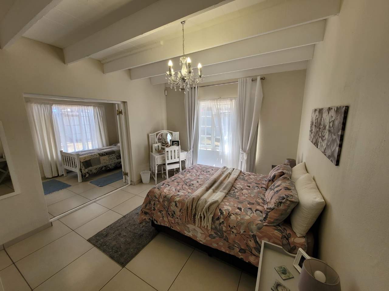 Downstairs, the home welcomes you with an entrance hall leading to a TV room, lounge, and dining area. The open-plan kitchen is well designed with a separate scullery for added convenience. An indoor braai room opens out to the backyard and swimming pool, —perfect for entertaining, children, and pets.