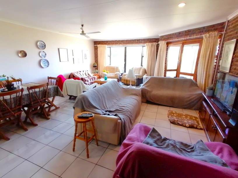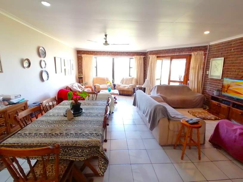 Versatile family home, positioned in a popular area of Jeffreys Bay, just a short walk from the beach and local amenities. The heart of the home features a spacious open-plan kitchen, dining, and lounge area that flows onto an enclosed patio. Here, you can entertain year-round with a built-in braai while enjoying tranquil views of the lush greenbelt bordering the property.