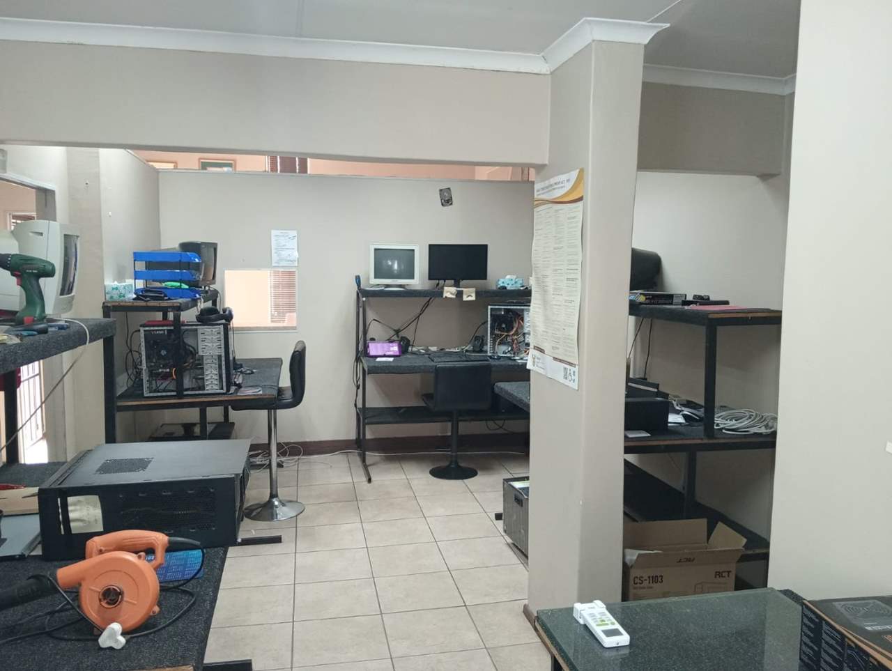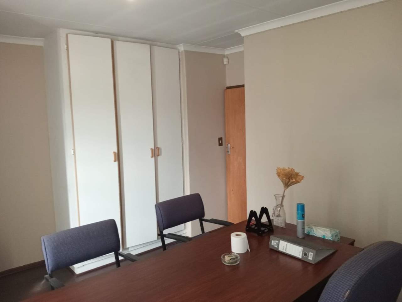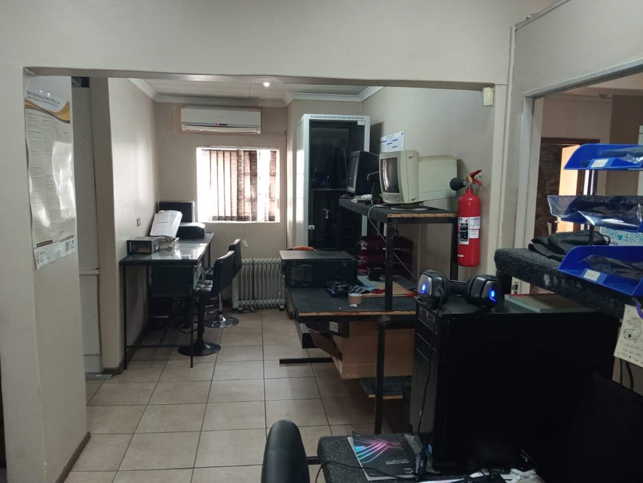 The property is located in an established commercial business and residential area in the central area of Bloemfontein near great amenities such as Mimosa mall, Waterfront mall, Medic clinic Hospital, Eduvos private University etc.. The property is a corner block stand in a fairly busy street and surrounded by other business properties. It is currently operating as offices that can be easily converted into two separate units. The property has 4 offices, technical space with a storage. It has 7 fire extinguishers in total, Camera, alarm system and 3 more storages. The property has two main switches for each unit and each unite is being sold for R867,975. There is a boardroom that can be turned into a spacious lounge if it can be turned into an apartment. The property is being sold with the furniture included.