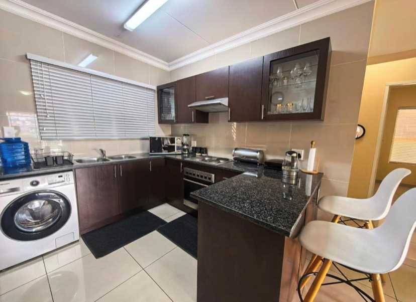 • Contemporary kitchen fitted with quality finishes, plenty of counter space, and room for appliances.