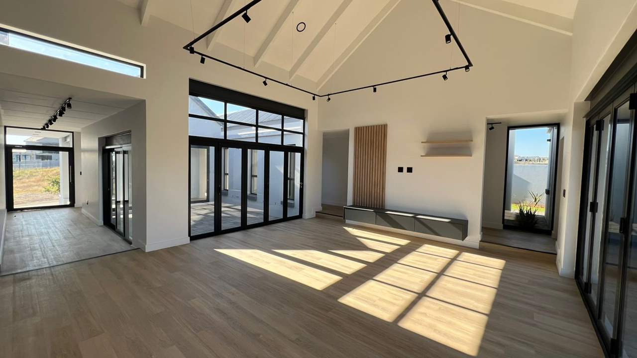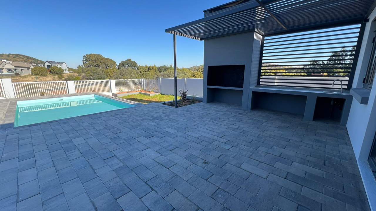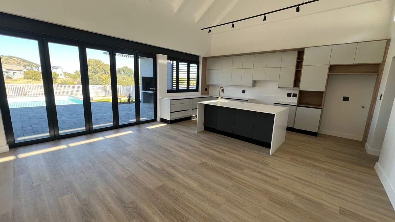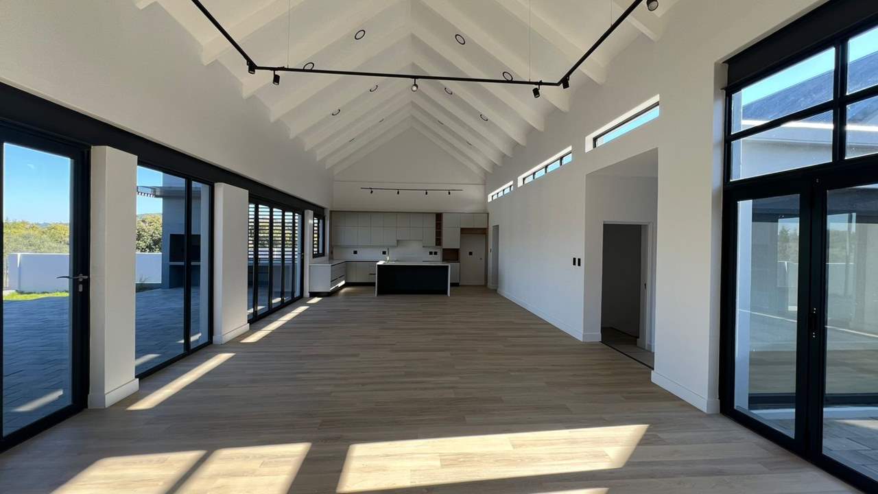 Boasting four spacious bedrooms and four elegant bathrooms, this home is designed for comfort and style. Expansive stacking doors on both the north and south sides flood the open-plan living areas with natural light, seamlessly connecting the indoors with the surrounding nature. High ceilings enhance the sense of space, adds warmth and ambiance. Perfect for entertaining, the home features a built-in braai overlooking a sparkling pool, ideal for hosting gatherings with friends and family.