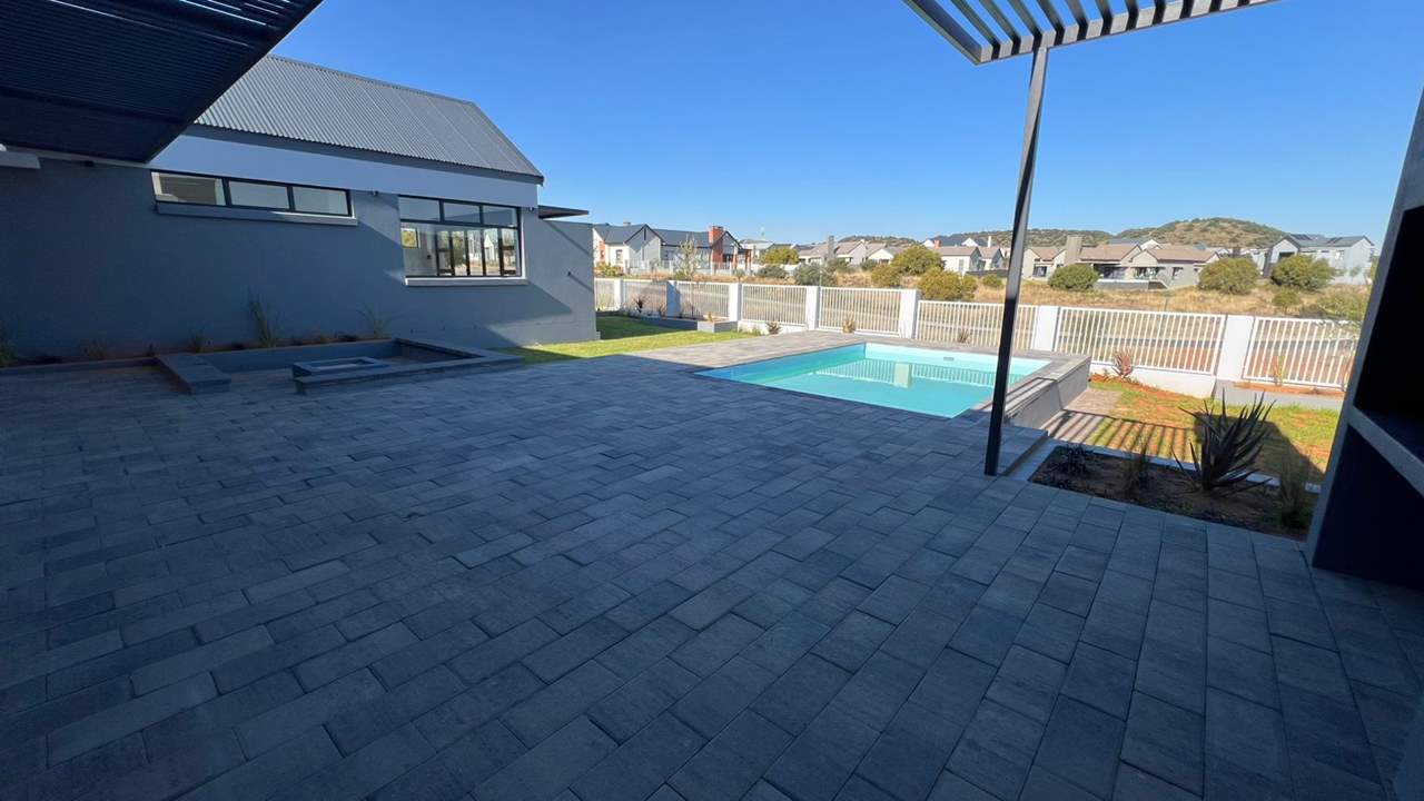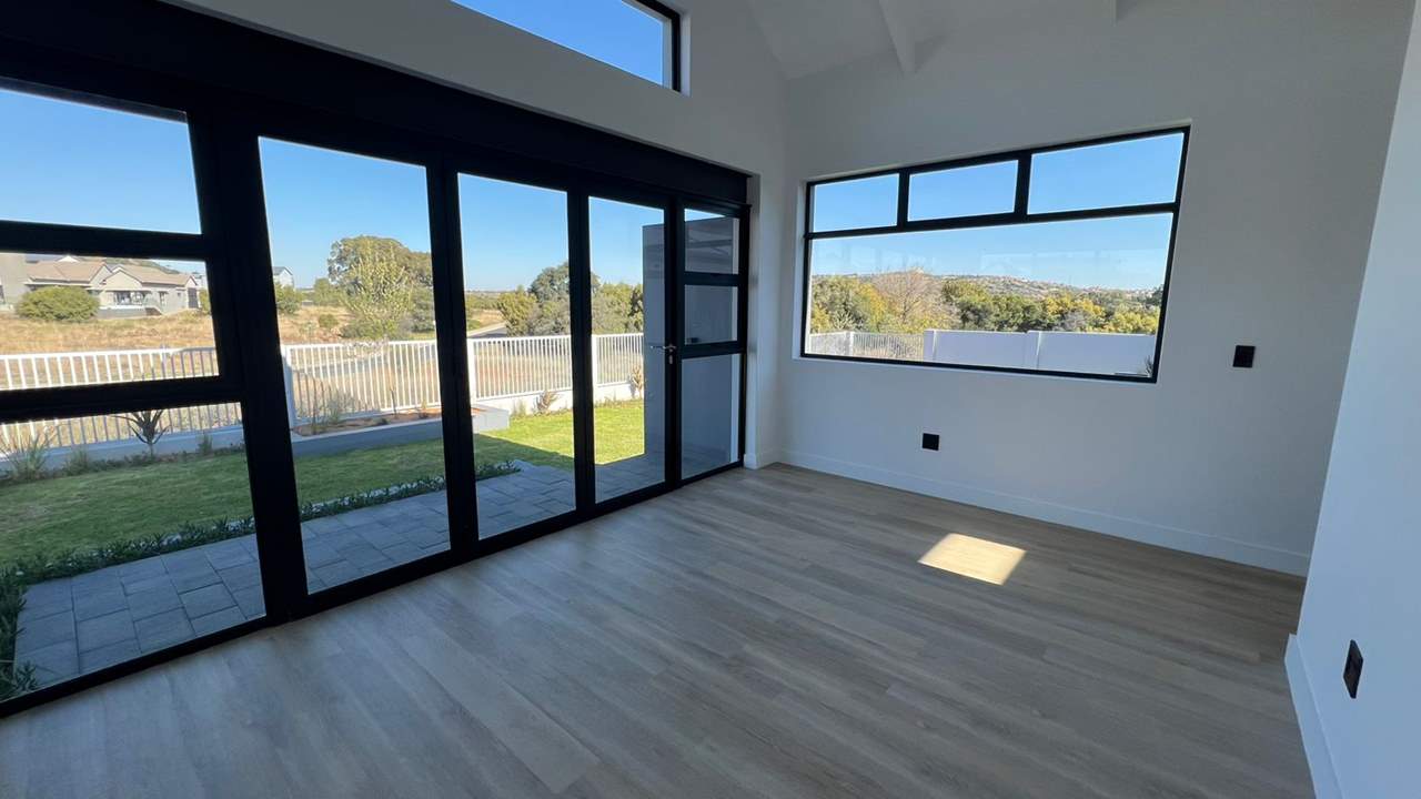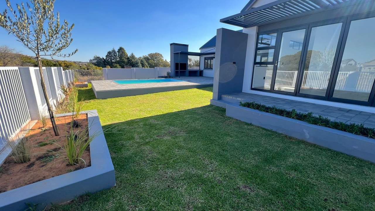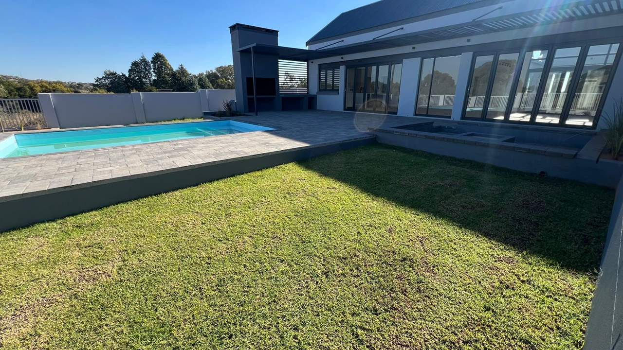 Boasting four spacious bedrooms and four elegant bathrooms, this home is designed for comfort and style. Expansive stacking doors on both the north and south sides flood the open-plan living areas with natural light, seamlessly connecting the indoors with the surrounding nature. High ceilings enhance the sense of space, adds warmth and ambiance. Perfect for entertaining, the home features a built-in braai overlooking a sparkling pool, ideal for hosting gatherings with friends and family.