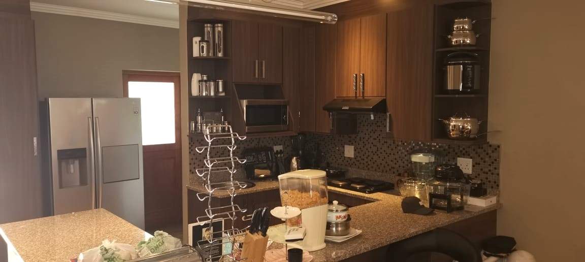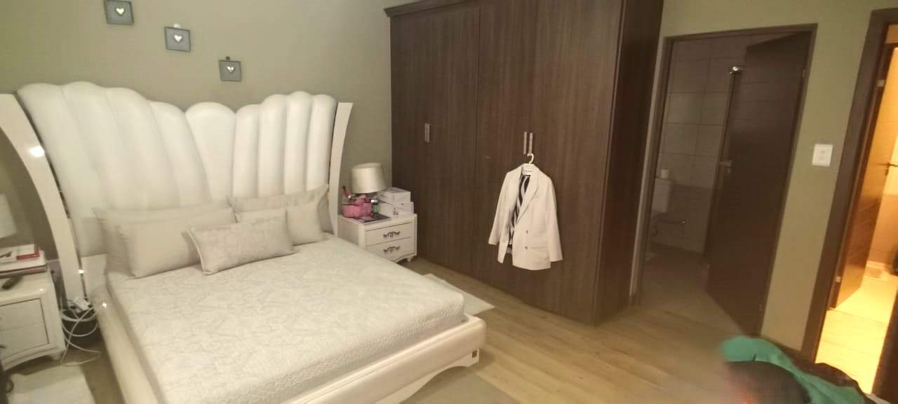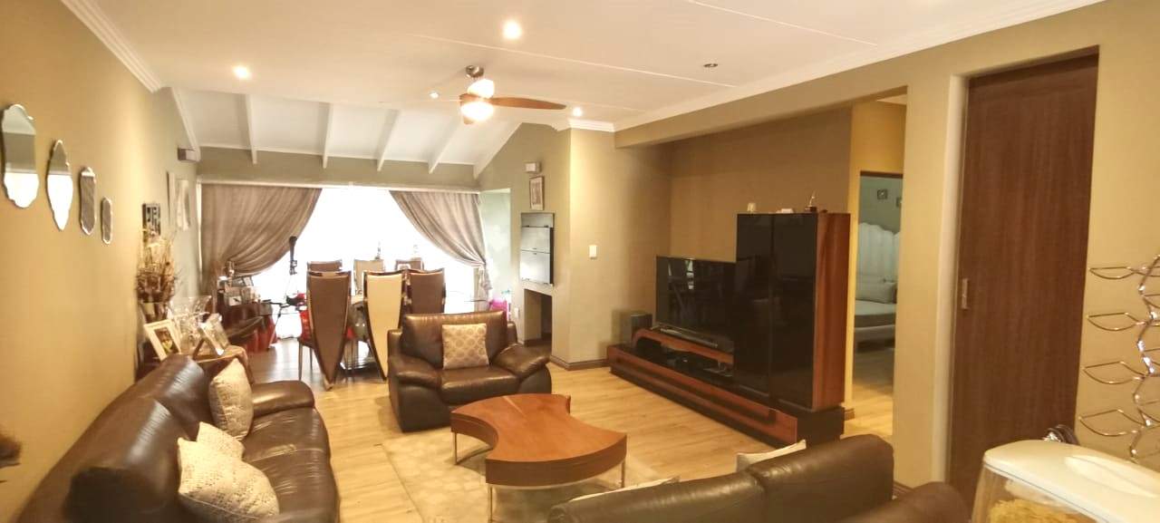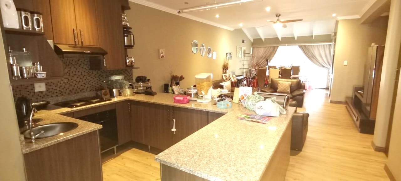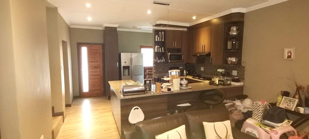 The townhouse features three spacious bedrooms, two full bathrooms, and a guest toilet. The open-plan living areas comprise a lounge, dining room, and kitchen with granite tops, scullery, and ample storage. Additional features include atrium ceilings, quality laminated flooring, and unique light fixtures. A double garage and private courtyard garden complete this gem. Located in the secure Woodland Hills Wildlife Estate, this property offers a unique lifestyle opportunity. Don't miss out on this exceptional townhouse!