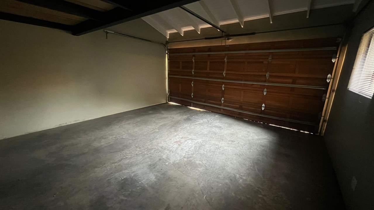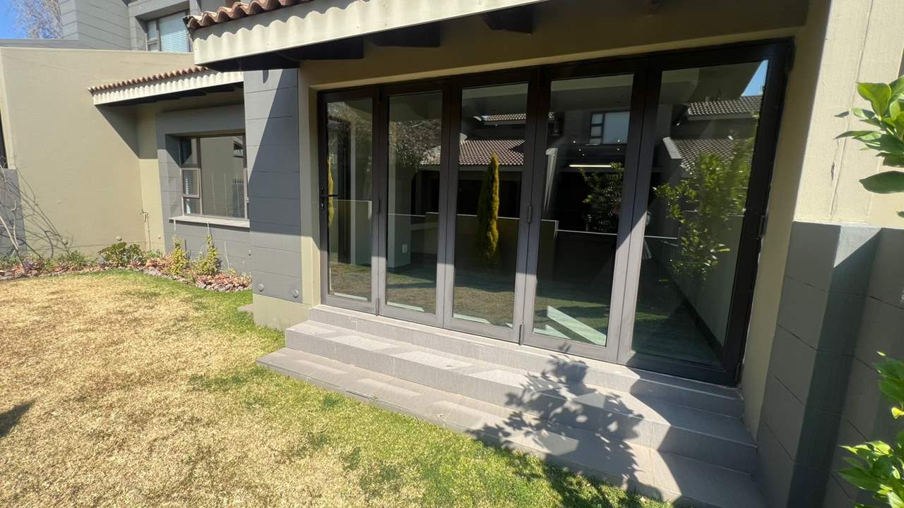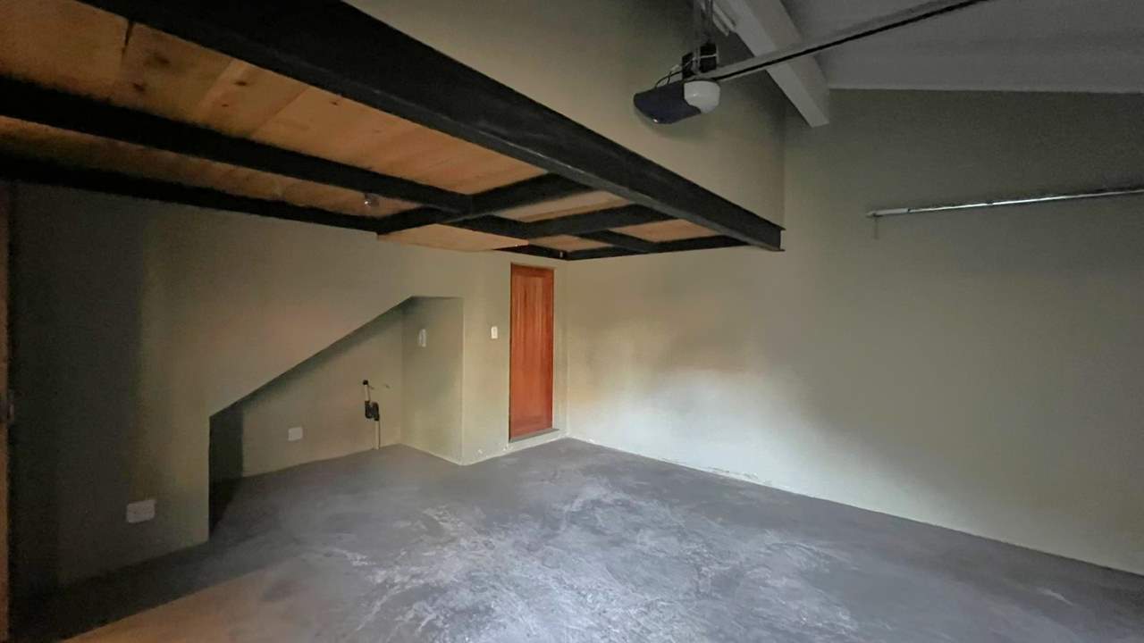 The open-plan kitchen, living, and dining area is designed for entertaining, complete with a built-in braai and stacking doors that open to a small, well-maintained garden. The townhouse also includes an automated double garage with space for a washing machine and tumble dryer.