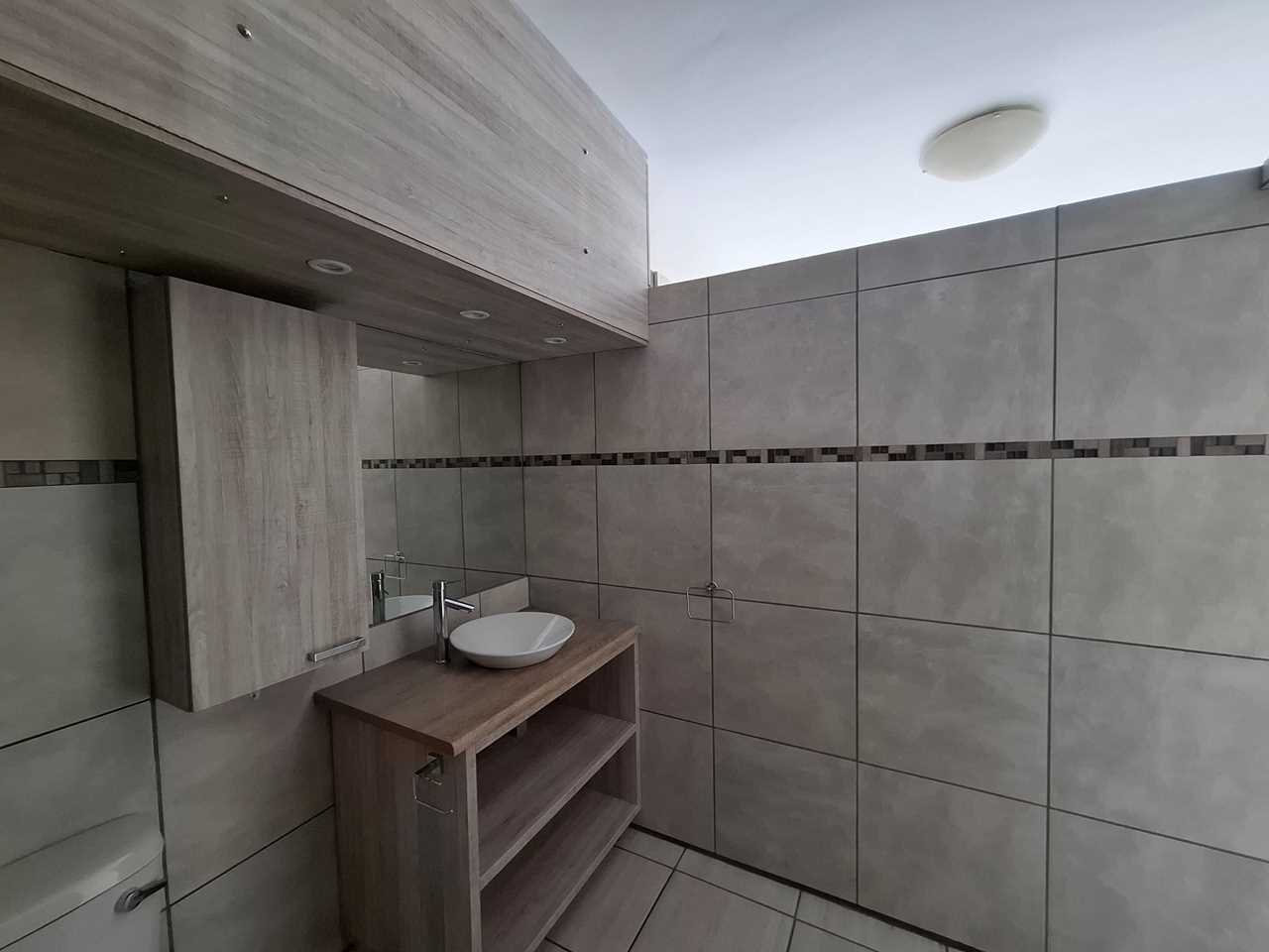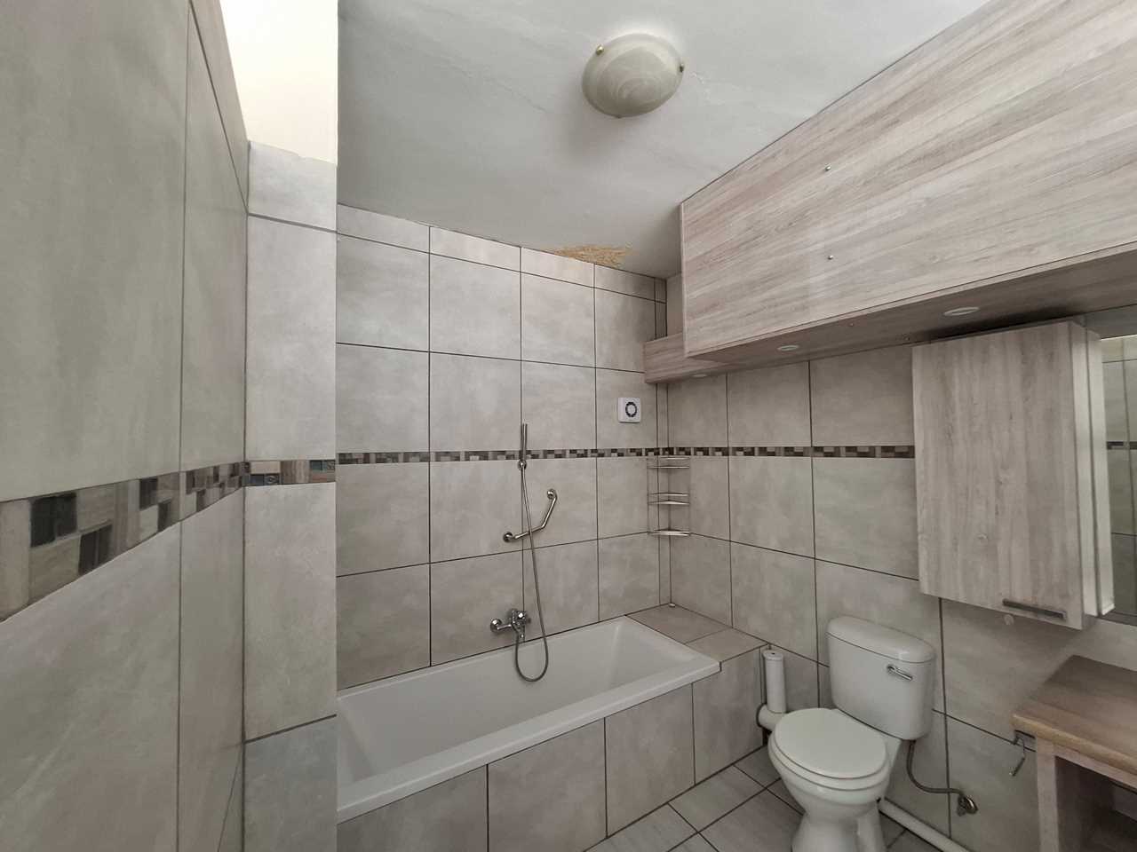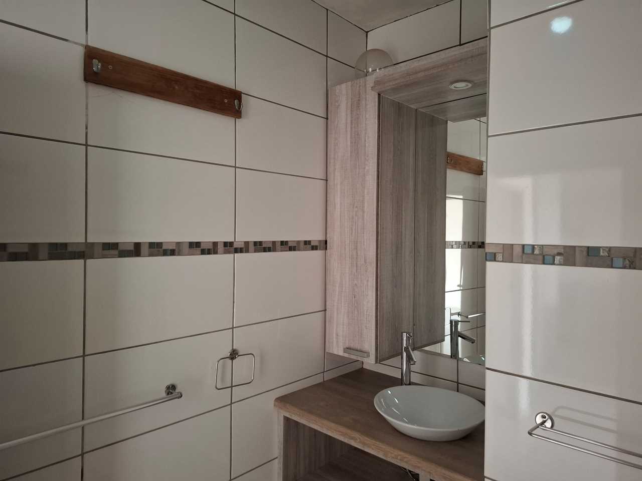 The modern kitchen offers ample cupboard space, room for two appliances, a gas stove, and an electric oven. Water is included in the rental, while electricity is metered according to usage.