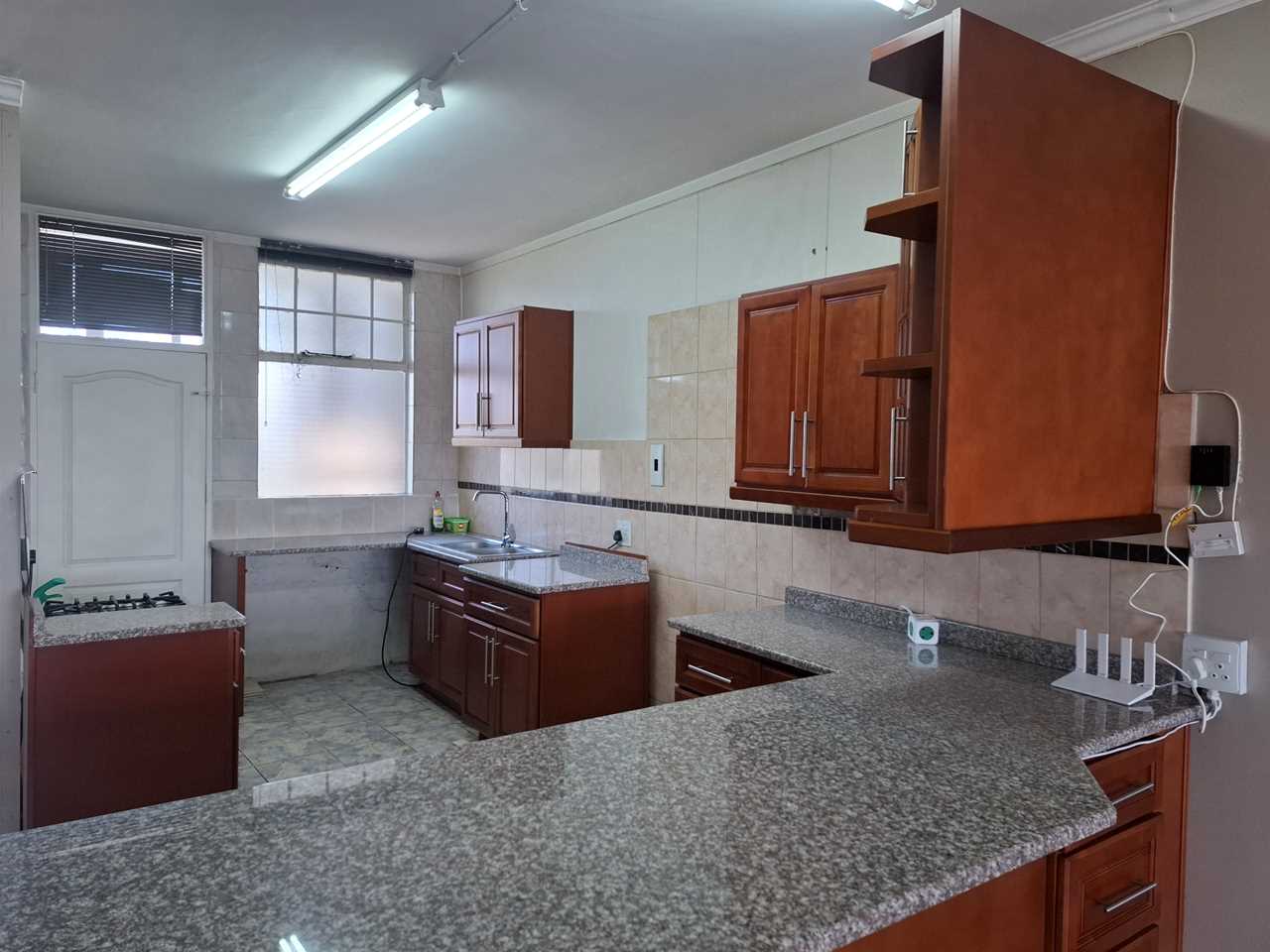 The kitchen is fitted with an electric oven and gas stovetop, along with ample cupboard space for convenient storage.