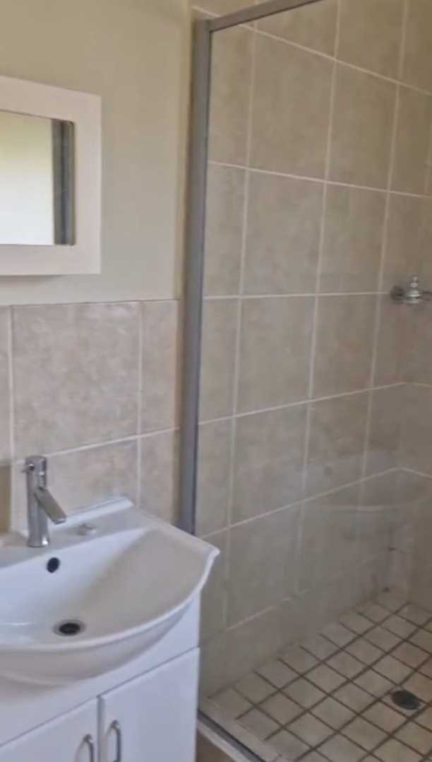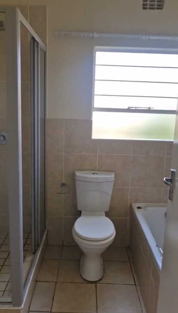 The home offers two bedrooms, both featuring built-in cupboards and plenty of natural light. The full bathroom includes a bath, shower, toilet, and basin, providing both convenience and comfort.