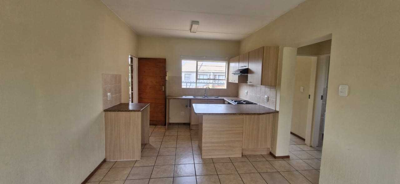 As you enter the apartment, you are welcomed into a modern open-plan kitchen, fitted with an electric stove, oven, extractor fan, double sink, and generous space for large electric appliances. The kitchen flows seamlessly into the bright and airy lounge area, which opens through a sliding door to an open grass area at the back of the unit.