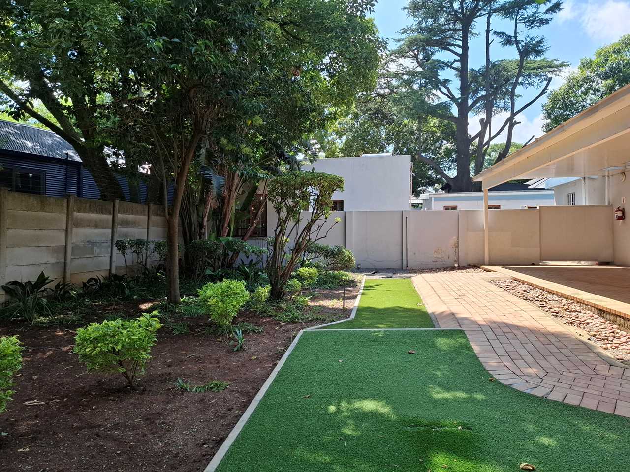 Outside, the space opens onto a peaceful garden with an undercover patio, ideal for a children’s play area, outdoor seating, or even a small restaurant concept.