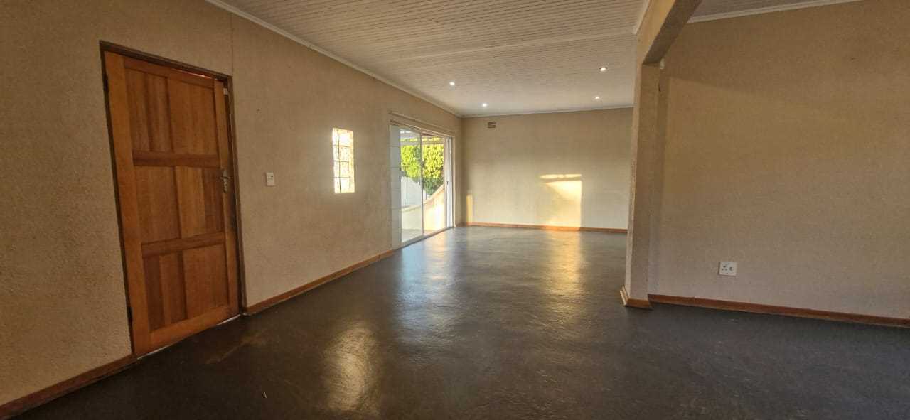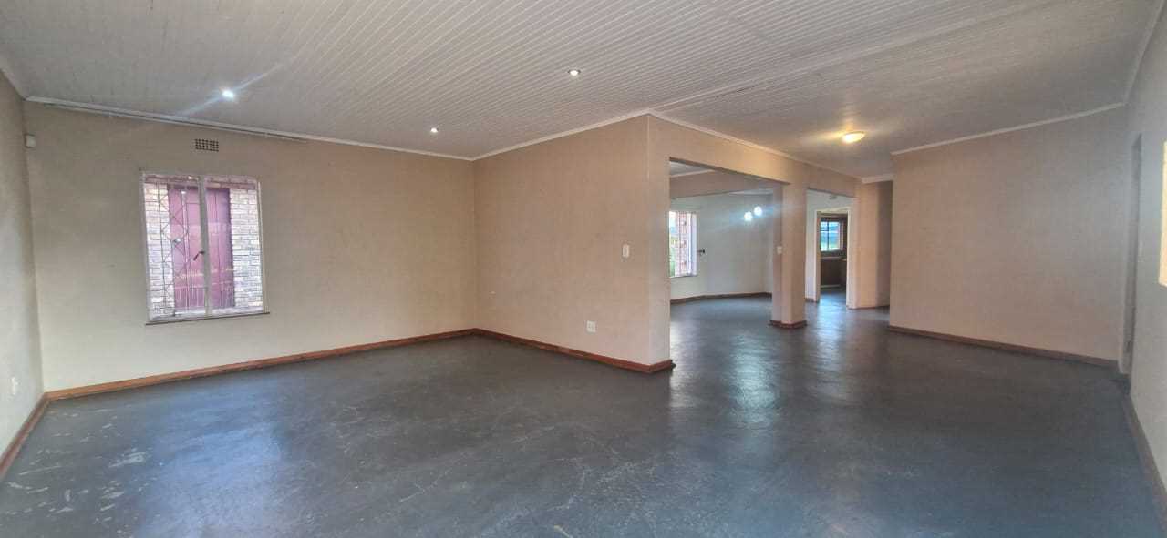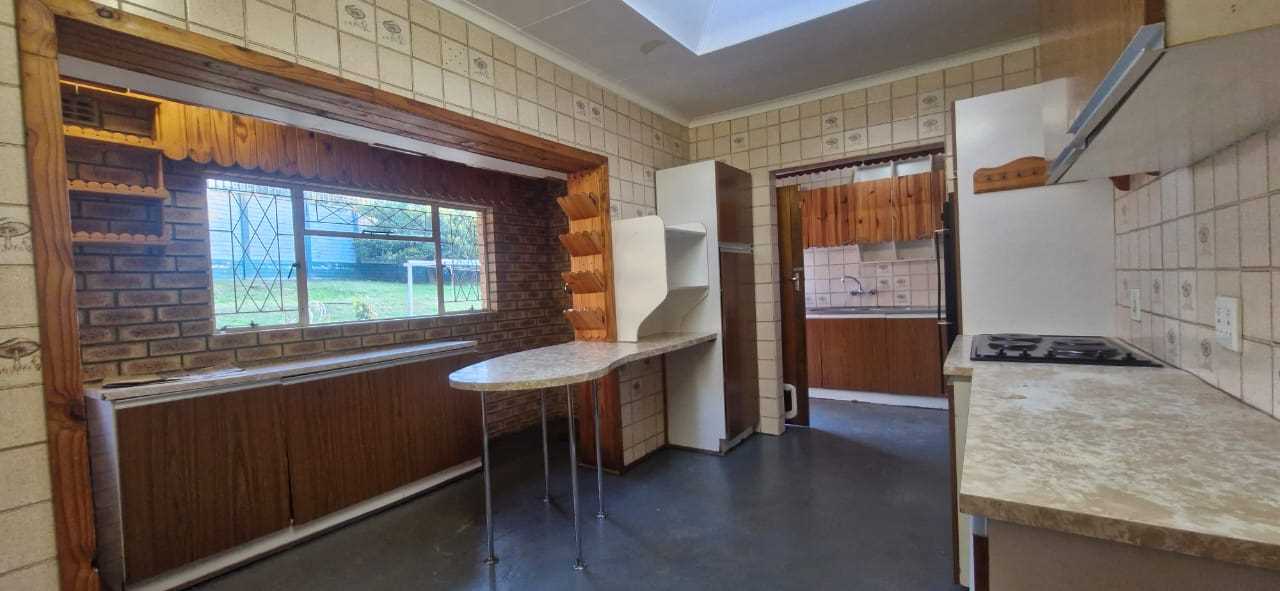 Inside, the home boasts two spacious, adjoining lounges—one of which opens onto a patio with a lever-style roof, perfect for relaxing or entertaining. The kitchen is generous in size and well-equipped with an electric stove and oven, double sink, ample space for 3–4 large appliances, and room for a fridge. It also provides access to the back garden, which includes additional space for outdoor living as well as a designated vegetable garden.