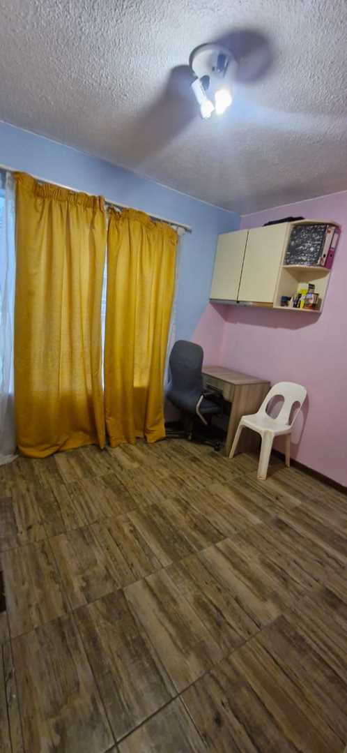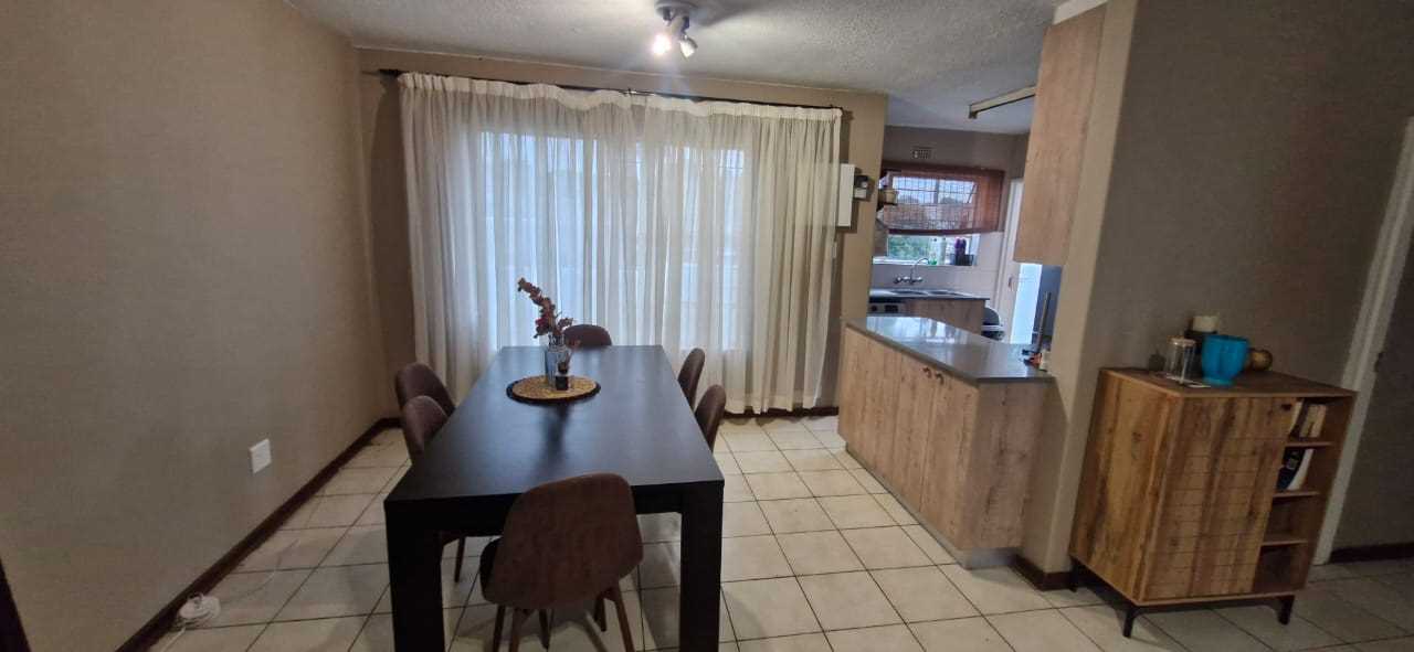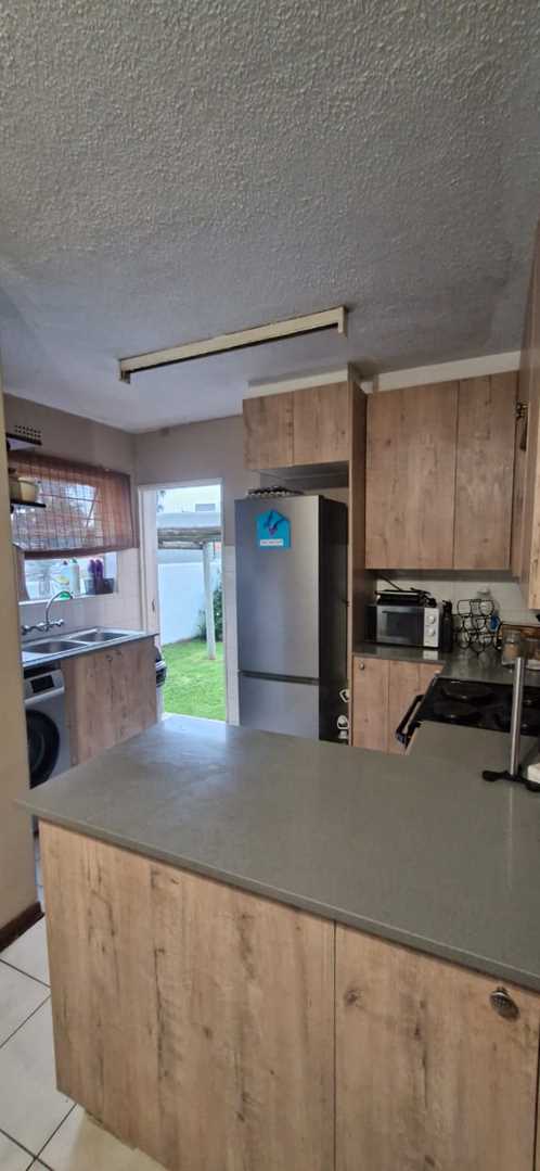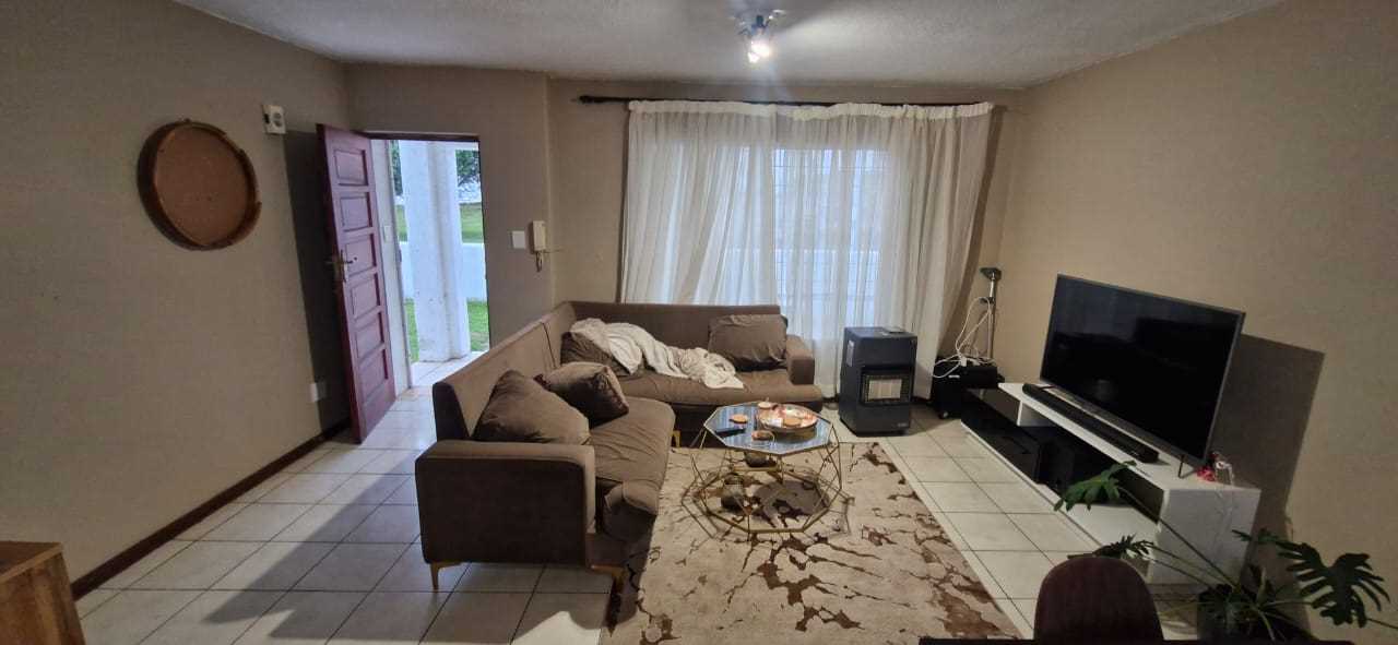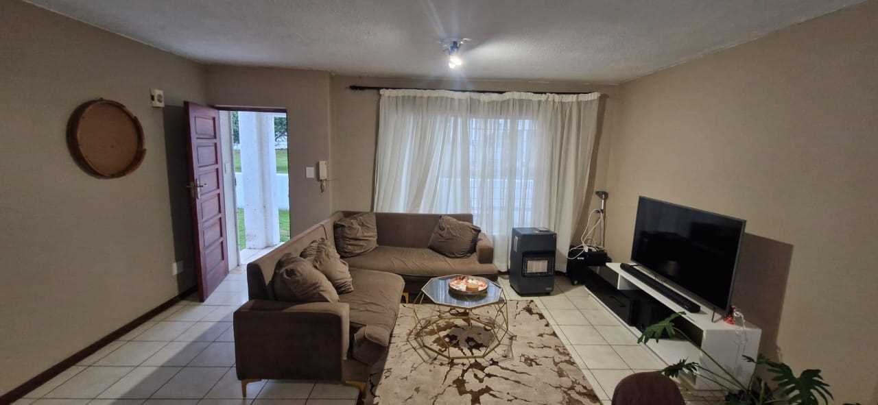 As you enter the apartment, you are welcomed by a spacious open-plan kitchen, dining, and lounge area, offering a seamless flow and plenty of natural light. The kitchen is well-equipped with a double sink, electric stove and oven, space for a fridge, and room for large electrical appliances. A back door leads out to the unit’s private garden, providing additional outdoor space for relaxation or entertaining.