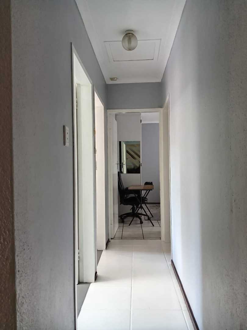 At the end of the hallway is the main bedroom, generously sized and fitted with built-in cupboards. The en-suite bathroom includes a basin, toilet, bath, and shower, providing both comfort and convenience.
